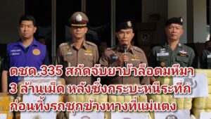 (มีคลิป) ตชด.335 สกัดจับยาบ้าล็อตมหึมา 3 ล้านเม็ด หลังซิ่งกระบะหนีระทึกก่อนทิ้งรถซุกข้างทางที่แม่แตง