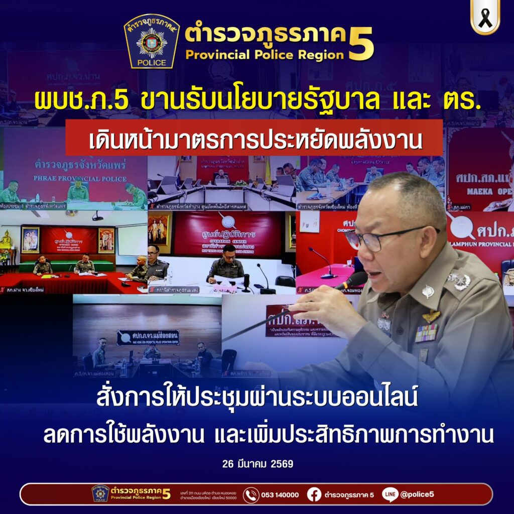 ผบช.ภ.5 ขานรับนโยบายรัฐบาลและสำนักงานตำรวจแห่งชาติ ตามมาตรการประหยัดพลังงาน สั่งการหน่วยในสังกัดประช...