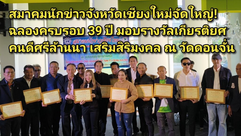 (มีคลิป) สมาคมนักข่าวจังหวัดเชียงใหม่จัดใหญ่! ฉลองครบรอบ 39 ปี มอบรางวัลเกียรติยศคนดีศรีล้านนา เสริม...