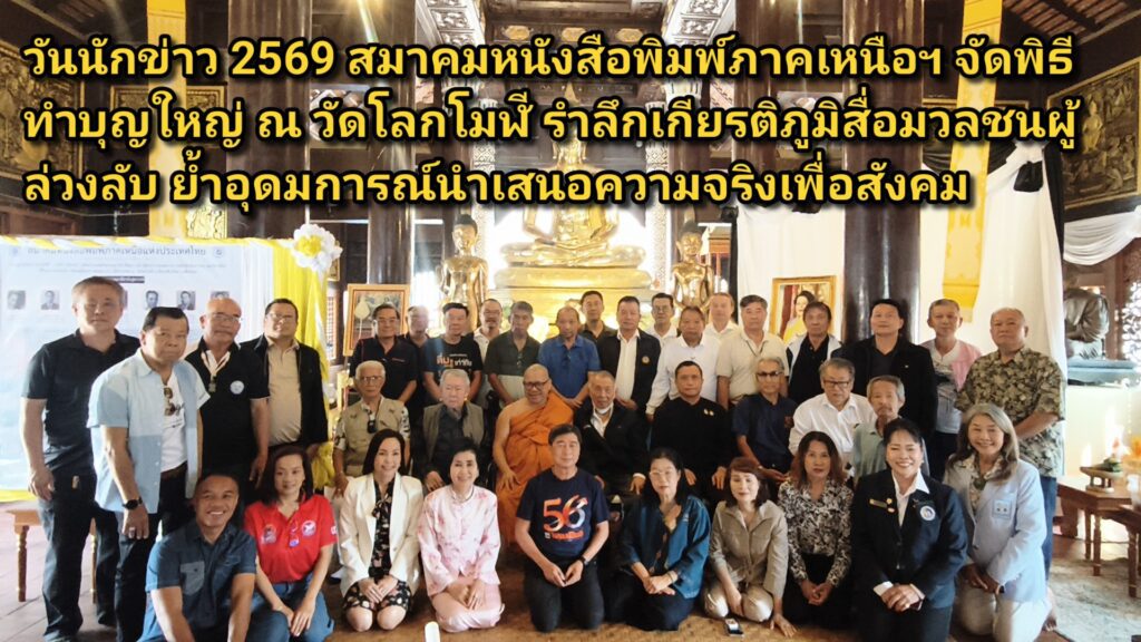 (มีคลิป) วันนักข่าว 2569 สมาคมหนังสือพิมพ์ภาคเหนือฯ จัดพิธีทำบุญใหญ่ ณ วัดโลกโมฬี รำลึกเกียรติภูมิสื...