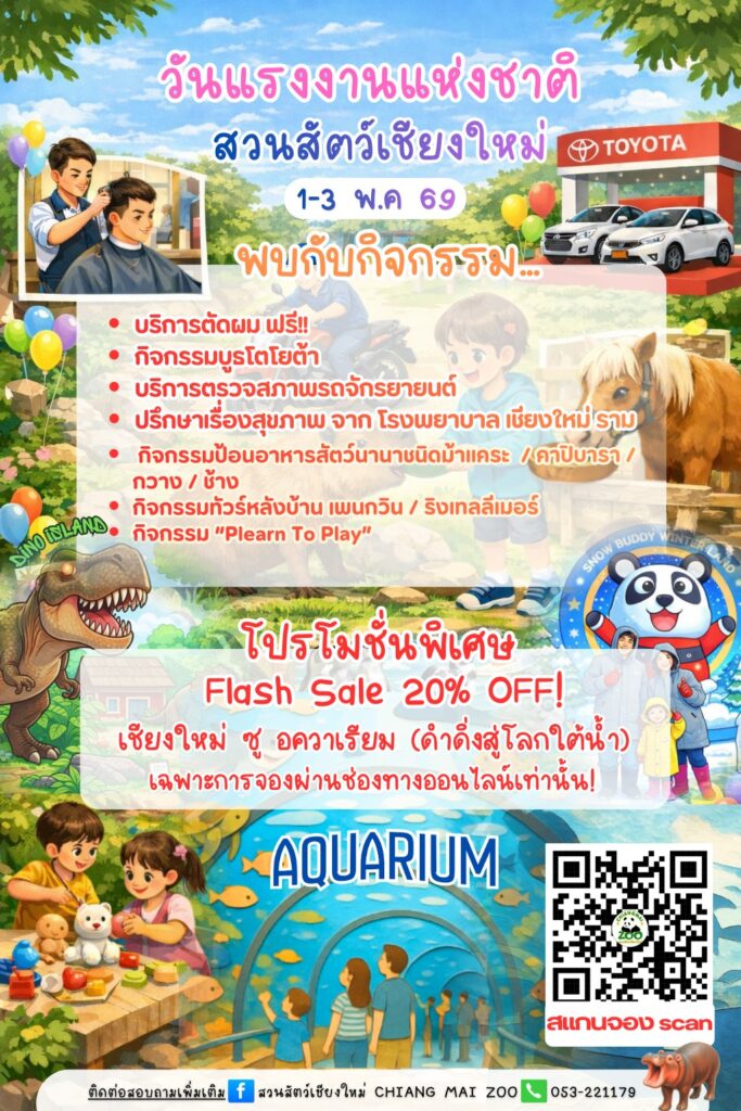 ฉลองวันแรงงานสุดคุ้ม! สวนสัตว์เชียงใหม่จัดเต็มกิจกรรมแน่น-โปรแรงเอาใจทั้งครอบครัว 1-3 พฤษภาคมนี้