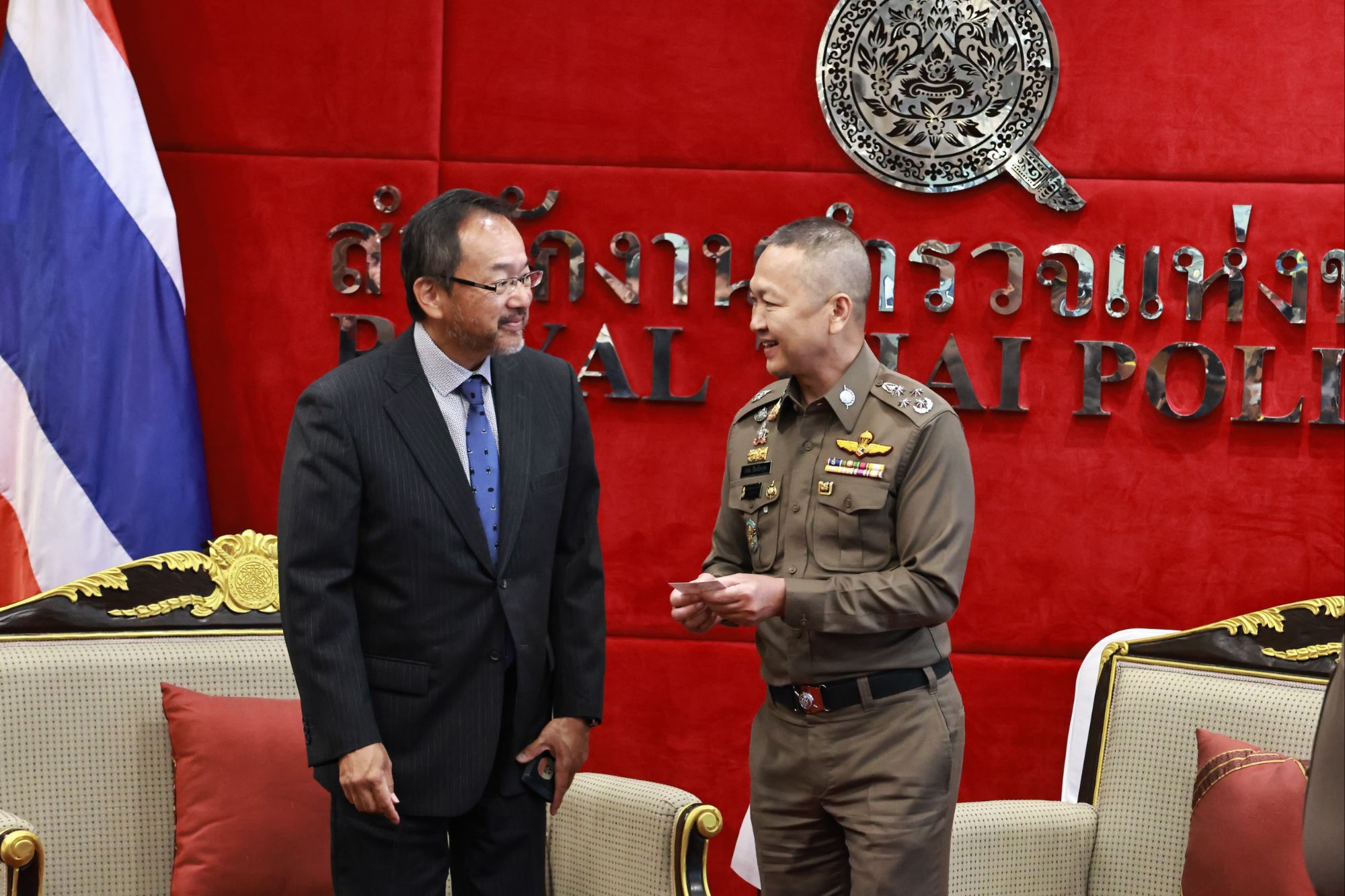 ผู้แทนสถานเอกอัครราชทูตญี่ปุ่น และสำนักงานตำรวจแห่งชาติญี่ปุ่น เข้าพบจเรตำรวจแห่งชาติ ขอบคุณตำรวจไทยที่จับกุมบุคคลตามหมายจับ และช่วยเหลือเหยื่อแก๊งคอลเซ็นเตอร์ชาวญี่ปุ่น พร้อมมอบเกียรติบัตรแก่คณะทำงาน