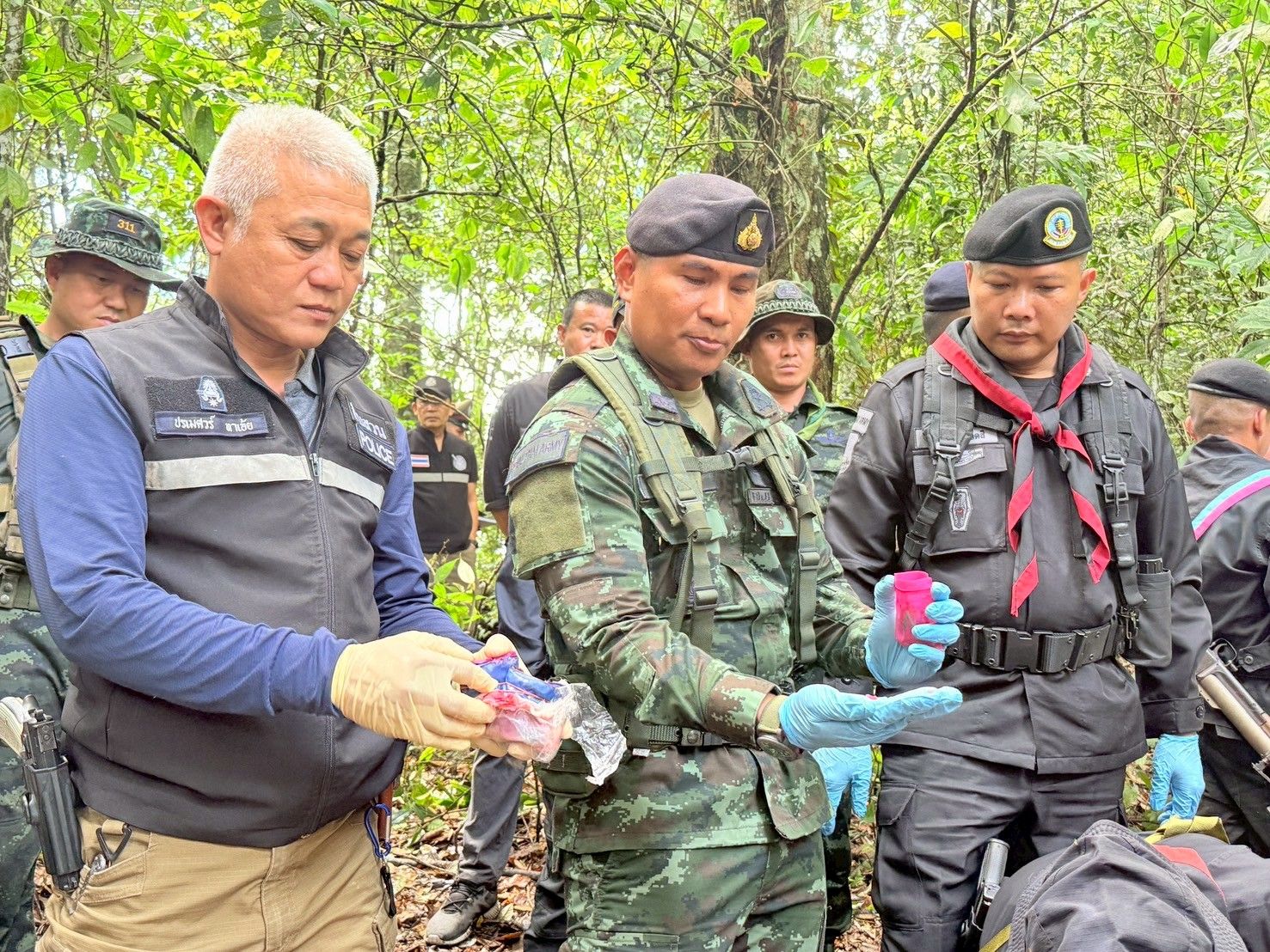 จนกระทั่ง เมื่อวันที่ 23 พฤษภาคม 2568 เวลา 06.00 น. ได้ตรวจพบกลุ่มบุคคลต้องสงสัย ประมาณ 5 – 8 ราย สะพายกระเป๋าเป้ดัดแปลงไว้ด้านหลังเดินเข้ามาในพื้นที่ดังกล่าว หน่วยจึงได้แสดงตัวเพื่อขอตรวจค้นแต่กลุ่มบุคคลดังกล่าวได้ใช้อาวุธปืนไม่ทราบชนิดและขนาดยิงใส่ฝ่ายเรา จึงเกิดการปะทะกัน ประมาณ 5 นาที ผลการปะทะ ฝ่ายเราปลอดภัย หน่วยจึงได้เข้าตรวจสอบพื้นที่เกิดเหตุ พบกลุ่มขบวนการฯ เสียชีวิต จำนวน 2 ศพ ตรวจยึดกระสอบดัดแปลงเป็นเป้สะพายหลัง จำนวน 5 เป้ ภายในบรรจุยาเสพติดยาเสพติดให้โทษประเภท 1 (ยาบ้า) เป้ละ 100,000 เม็ด รวมประมาณ 500,000 เม็ด, อาวุธปืนยาวไทยประดิษฐ์ (ปืนแก๊ป) จำนวน 1 กระบอก และโทรศัพท์มือถือ จำนวน 1 เครื่อง หน่วยจึงได้จัดกำลังพลเพิ่มเติม จำนวน 2 ชุดปฏิบัติการ วางกำลังควบคุมพื้นที่เกิดเหตุ