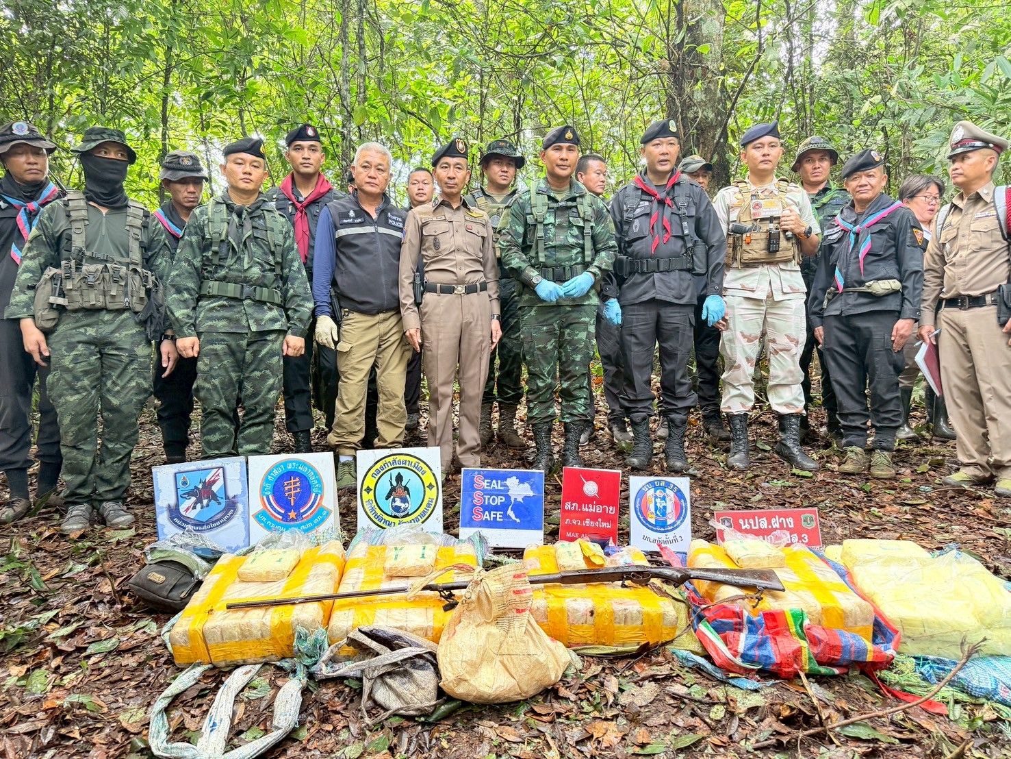 จนกระทั่ง เมื่อวันที่ 23 พฤษภาคม 2568 เวลา 06.00 น. ได้ตรวจพบกลุ่มบุคคลต้องสงสัย ประมาณ 5 – 8 ราย สะพายกระเป๋าเป้ดัดแปลงไว้ด้านหลังเดินเข้ามาในพื้นที่ดังกล่าว หน่วยจึงได้แสดงตัวเพื่อขอตรวจค้นแต่กลุ่มบุคคลดังกล่าวได้ใช้อาวุธปืนไม่ทราบชนิดและขนาดยิงใส่ฝ่ายเรา จึงเกิดการปะทะกัน ประมาณ 5 นาที ผลการปะทะ ฝ่ายเราปลอดภัย หน่วยจึงได้เข้าตรวจสอบพื้นที่เกิดเหตุ พบกลุ่มขบวนการฯ เสียชีวิต จำนวน 2 ศพ ตรวจยึดกระสอบดัดแปลงเป็นเป้สะพายหลัง จำนวน 5 เป้ ภายในบรรจุยาเสพติดยาเสพติดให้โทษประเภท 1 (ยาบ้า) เป้ละ 100,000 เม็ด รวมประมาณ 500,000 เม็ด, อาวุธปืนยาวไทยประดิษฐ์ (ปืนแก๊ป) จำนวน 1 กระบอก และโทรศัพท์มือถือ จำนวน 1 เครื่อง หน่วยจึงได้จัดกำลังพลเพิ่มเติม จำนวน 2 ชุดปฏิบัติการ วางกำลังควบคุมพื้นที่เกิดเหตุ