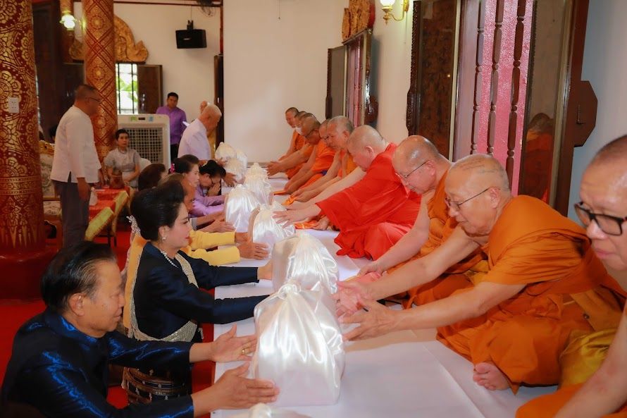 เมื่อวันศุกร์ที่ 23 พฤษภาคม 2568 เจ้าประคุณ สมเด็จพระมหาธีราจารย์ กรรมการมหาเถรสมาคม เจ้าคณะใหญ่หนเหนือ เจ้าอาวาสวัดพระเชตุพนวิมลมังคลาราม ราชวรมหาวิหาร เมตตาประทานผ้าไตร จำนวน 10 ไตร โดยการประสานงาน เจ้าเจือจันทร์ ณ เชียงใหม่ ในการบำเพ็ญกุศลอุทิศอดีตผู้ครองนครเชียงราย โดยมี นายนายรุจติศักดิ์ รังษี รองผู้ว่าราชการจังหวัดเชียงราย เป็นประธานในพิธี และมีเจ้าเจือจันทร์-ดร.ถาวร ณ เชียงใหม่ และกลุ่มบุตรหลานทายาทเจ้านายฝ่ายเหนือเชียงราย ผู้สืบชั้นสายเชื้อในราชวงศ์ ทิพย์จักราธิราชวงศ์ จังหวัดเชียงราย ร่วมบำเพ็ญกุศลทักษิณนุปทาน อุทิศถวายเป็นพระราชกุศลแด่บรรพกษัตริย์ในราชวงศ์มังราย และเจ้าผู้ครองนครเมืองเชียงราย ฯ ช่วงเย็น มีพิธีเจริญพระพุทธมนต์ พิธีสรงน้ำสะดือเมืองเชียงราย โดยมี นายวันชัย จงสุทธานามณี เป็นประธานในพิธีเจริญพระพุทธมนต์ ภายในงานมีกิจกรรมทางวัฒนธรรมมากมาย เช่น การใส่ขันดอก การบูชาเสาสะดือเมือง พิธีกรรมทางศาสนา และการแสดงศิลปะพื้นบ้าน (ฟ้อน ,ซอ ,ปี่พาทย์) เพื่อสืบสานภูมิปัญญา และส่งต่อมรดกทางจิตวิญญาณสู่คนรุ่นใหม่ณ ณ วัดกลางเวียง ตำบลเวียง อำเภอเมืองเชียงราย จังหวัดเชียงราย.