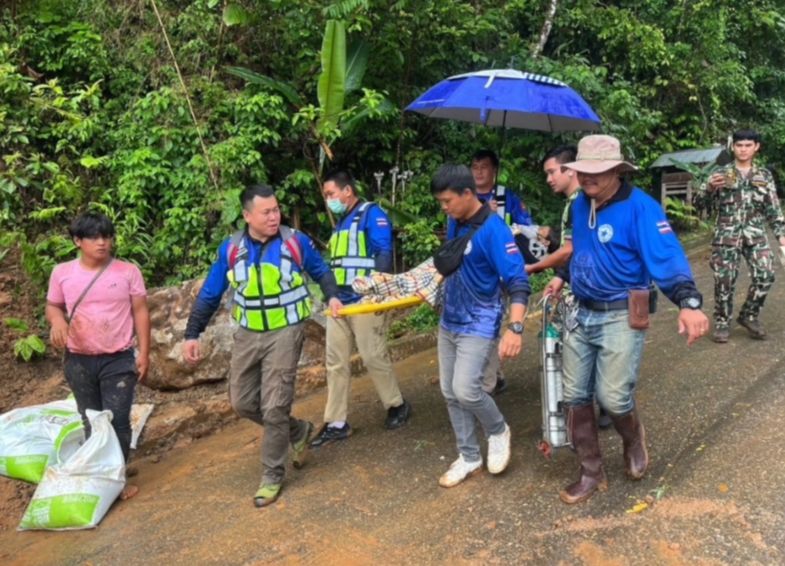 โดยเจ้าหน้าที่หน่วยกู้ชีพองค์การบริหารส่วนตำบลเชียงดาว ได้ทำการปฐมพยาบาลเบื้องต้นและนำตัวผู้ป่วยขึ้นเปลสนามเดินลัดเลาะกองดินที่ทรุดตัว นำตัวส่งโรงพยาบาลเชียงดาวได้อย่างปลอดภัย