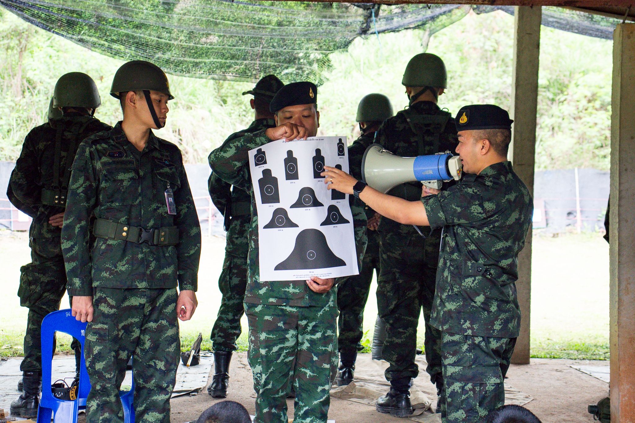 ผู้บังคับกองพันมณฑลทหารบกที่ 33 เสริมสร้างกำลังใจให้ทหารใหม่ ผลัดที่ 1/68 ในการยิงปืนด้วยกระสุนจริง ครั้งแรก