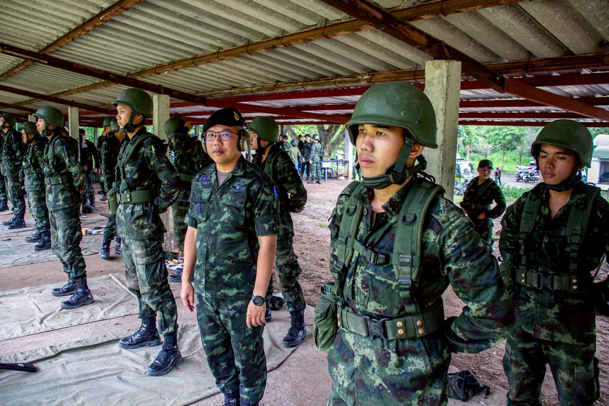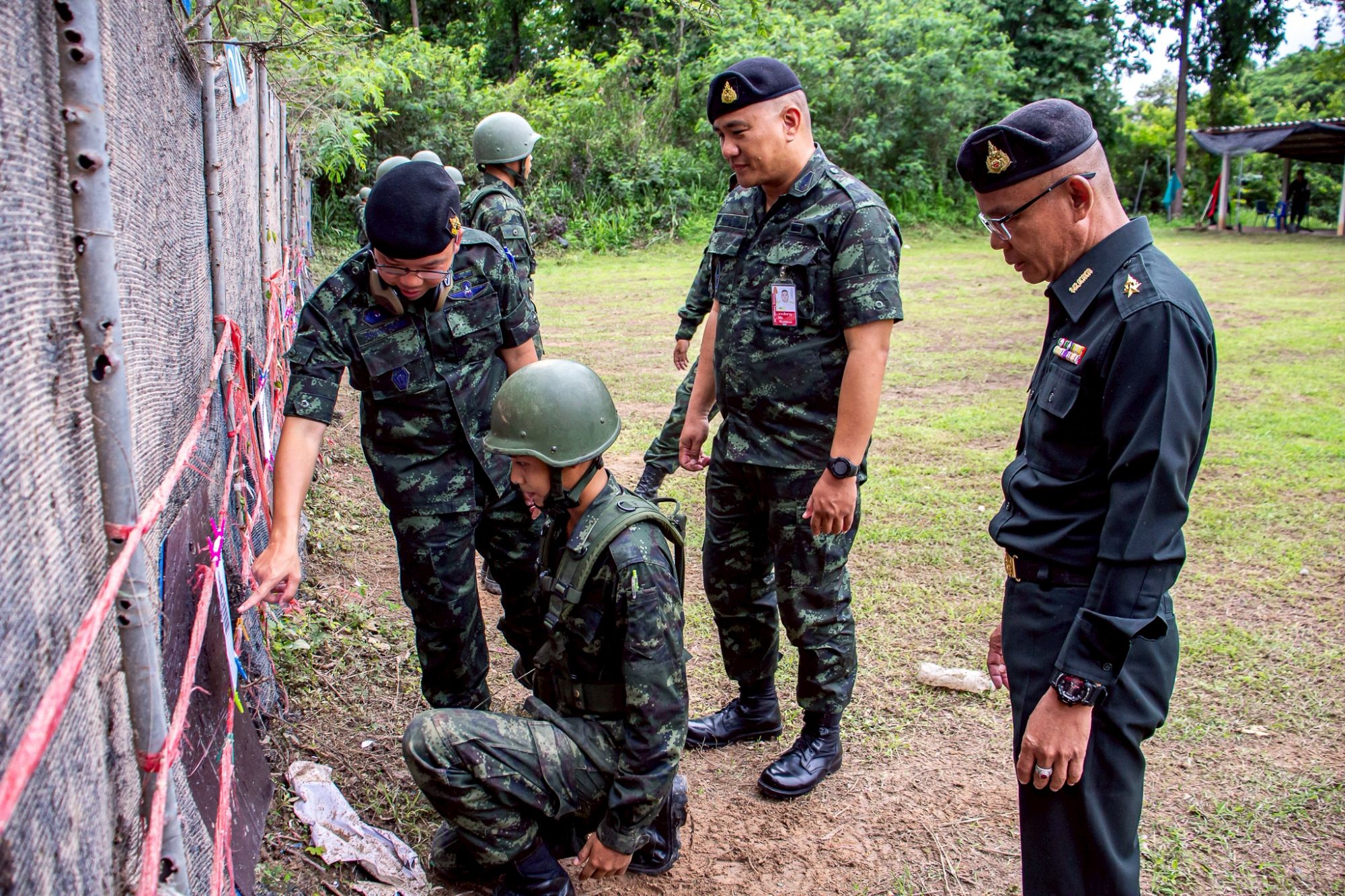 รองผู้บังคับกองพันมณฑลทหารบกที่ 33 ตรวจสอบการฝึกยิงปืนทหารใหม่ ผลัดที่ 1/68 ในการยิงปืนด้วยกระสุนจริง ครั้งแรก