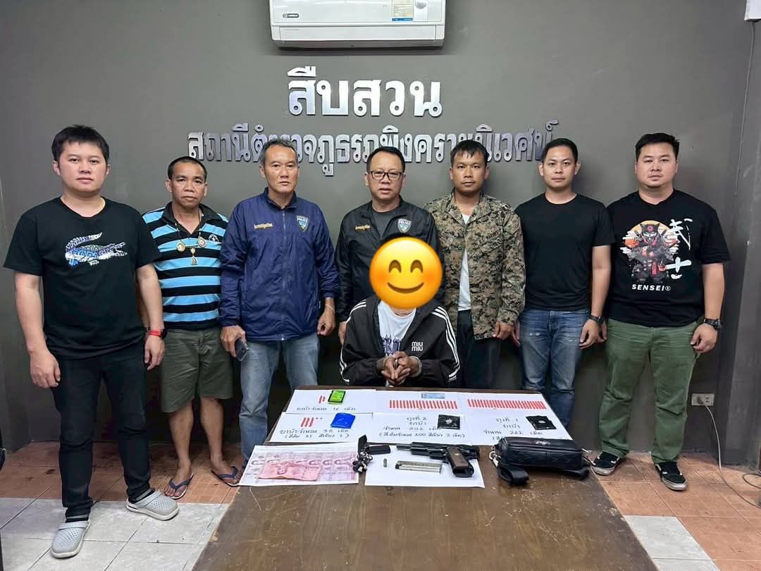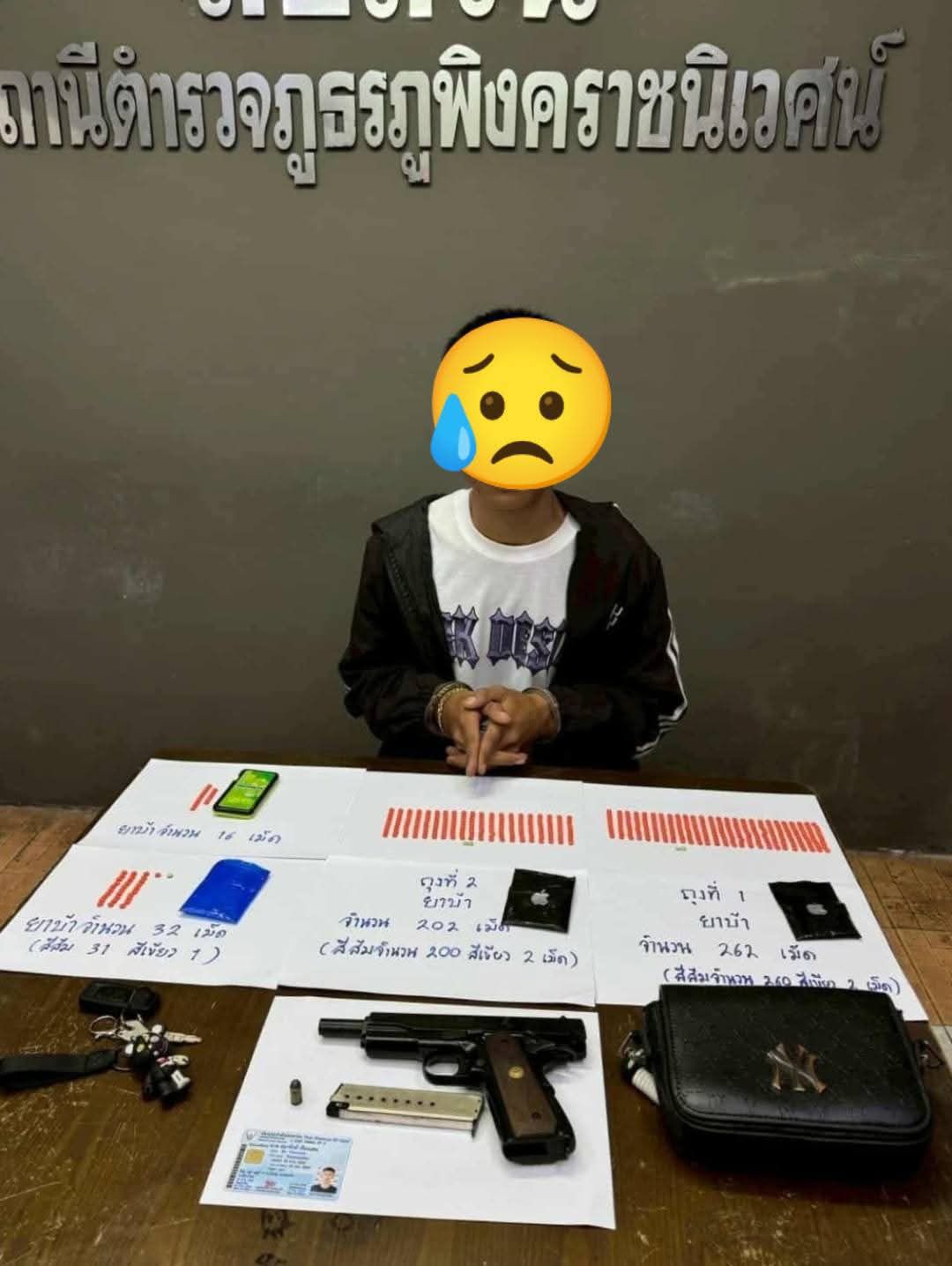 รอง ผกก.สส.สภ.ภูพิงค์ฯ ชุดจับกุมนำโดยพ.ต.ต.นพรัตน์ อุตเสน สว.สส.ฯ ร.ต.อ.ธีระศักดิ์ ยอดปะนัน รองสว.สส.ฯพร้อม จนท.สืบสวนฯได้ร่วมกันทำการจับกุม นายธน(นามสมมุติ)อายุ 21 ปี จับกุม บริเวณลานจอด ถ.มินมานเหมินท์ ต.สุเทพ อ.เมืองเชียงใหม่ จ.เชียงใหม่ ในความผิดฐาน “จำหน่ายโดยมีไว้เพื่อจำหน่ายยาเสพติดให้โทษชนิดร้ายแรงประเภท 1 (เมทแอมเฟตามีนหรือยาบ้า) และมีอาวุธปืนและเครื่องกระสุนปืนไว้ในความครอบครองโดยไม่ได้รับอนุญาต ”ของกลาง