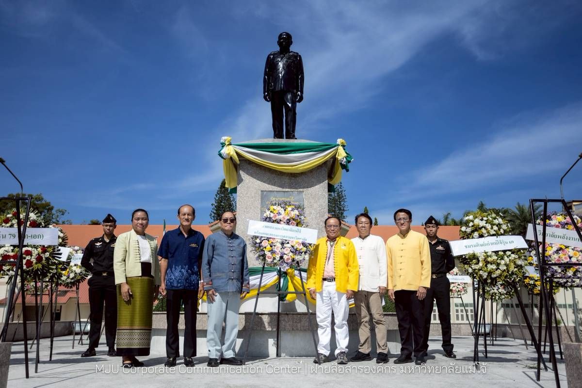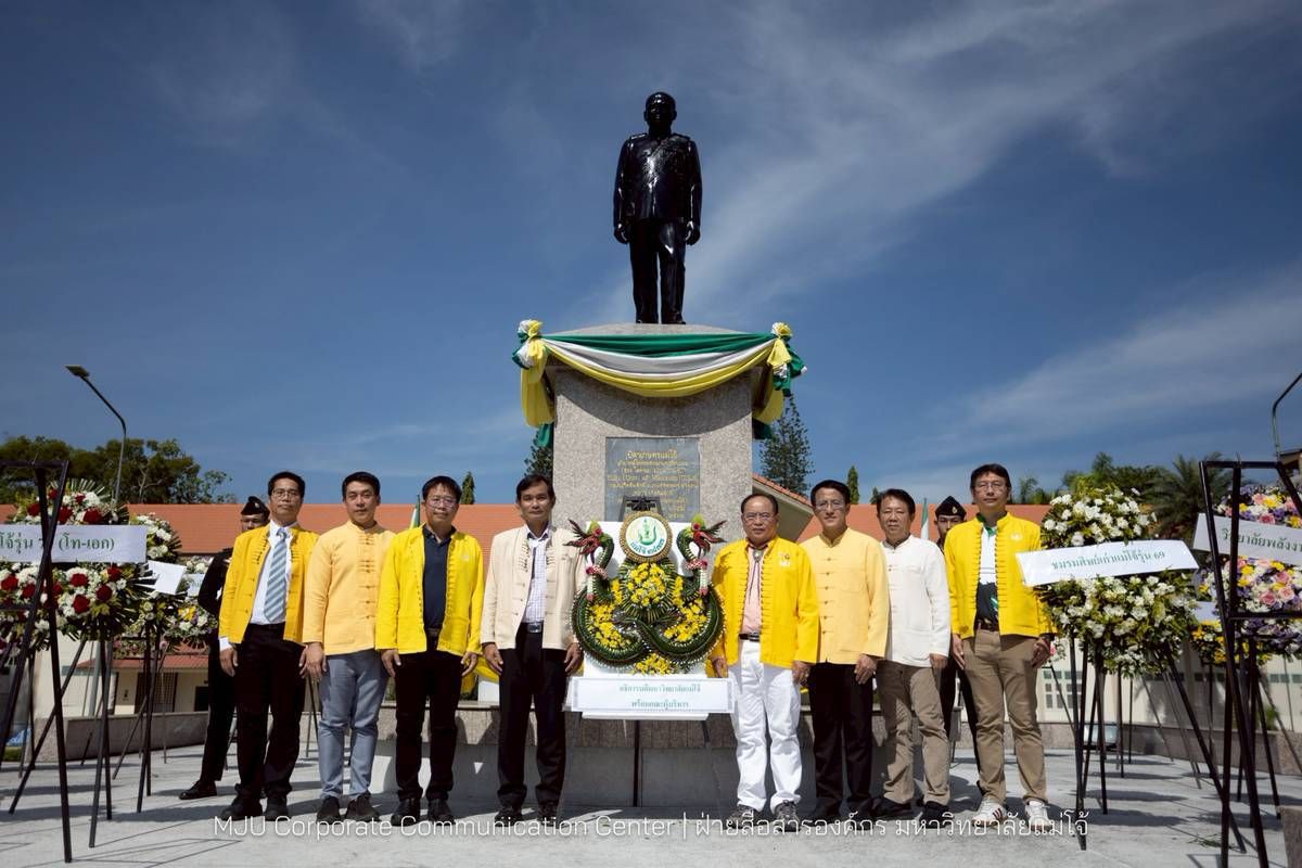 เวลา 08.59 น.เป็นต้นไป มีพิธีวางพวงมาลาคารวะอนุสาวรีย์อำมาตย์โทพระช่วงเกษตรศิลปการ “บิดาเกษตรแม่โจ้” ผู้บุกเบิกก่อตั้งแม่โจ้ จนมีคำกล่าวที่ว่า “ไม่มีพระช่วงฯ ไม่มีแม่โจ้” ซึ่งในปีนี้มหาวิทยาลัยแม่โจ้ครบรอบ 91 ปี โอกาสนี้ คุณขุมทรัพย์ โลจายะ ทายาทอำมาตย์โทพระช่วง เกษตรศิลปการ ให้เกียรติเข้าร่วมพิธี มีศิษย์เก่ารุ่นต่างๆ มอบเงินสนับสนุนเพื่อร่วมพัฒนามหาวิทยาลัย กว่า 200,000 บาท ทั้งนี้ มีหน่วยงาน องค์กรต่างๆ รวมถึงผู้แทนศิษย์เก่าแต่ละรุ่น แต่ละภูมิภาค เข้าร่วมพิธีอย่างเนื่องแน่น