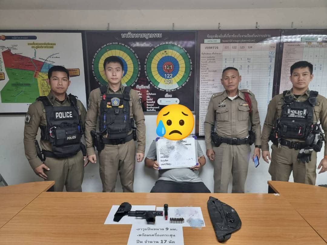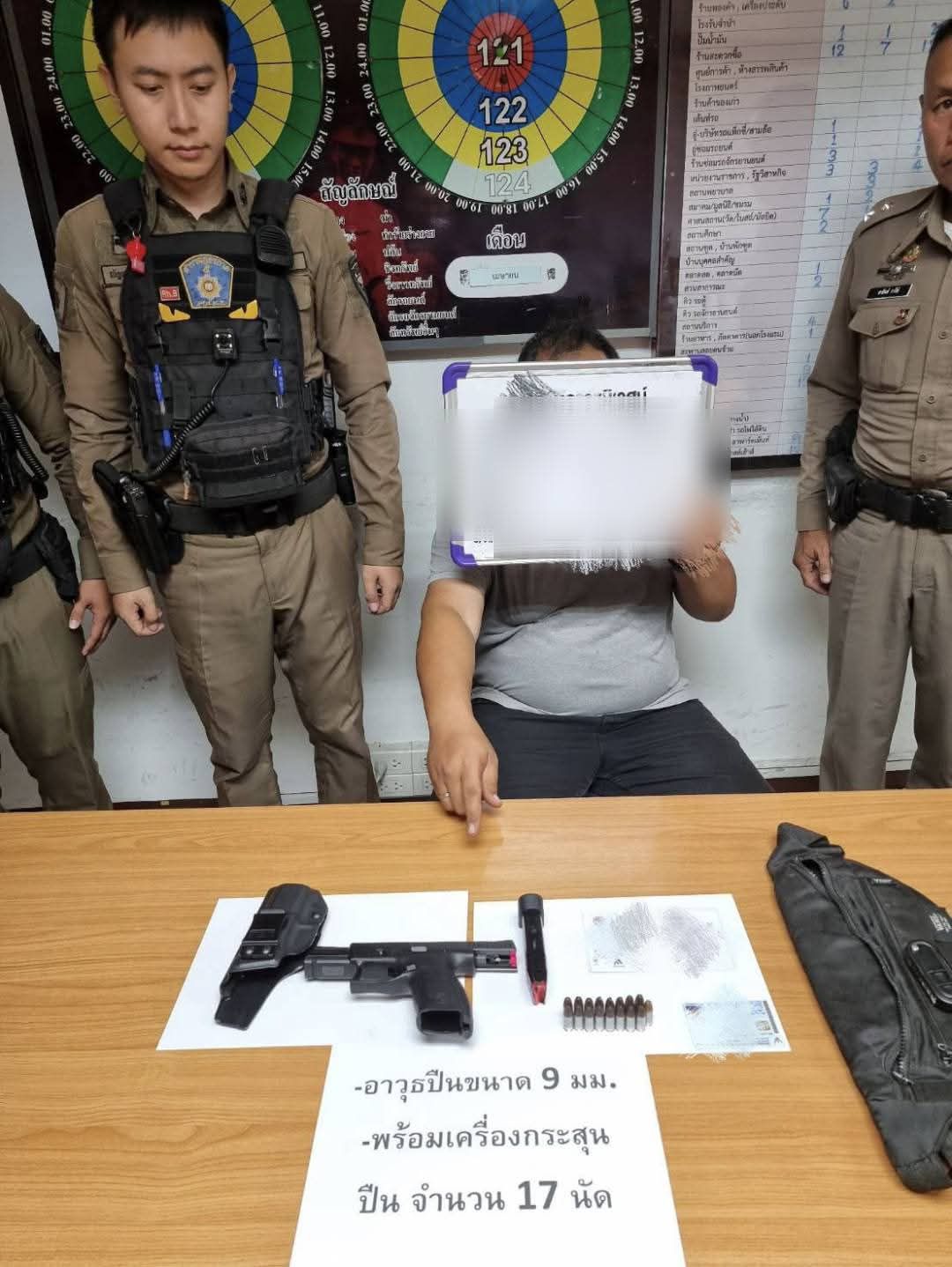 ชายไทย (สงวนชื่อและนามสกุล) อายุประมาณ 40 ปี ในข้อหา 1.มีอาวุธปืนและเครื่องกระสุนปืนซึ่งไม่ได้รับอนุญาตให้มีและใช้ตามกฎหมายไว้ในครอบครองโดยมิได้รับอนุญาต 2.พาอาวุธปืนไปในเมือง หมู่บ้านหรือทางสาธารณะโดยไม่ได้รับอนุญาตให้มีอาวุธปืนติดตัวโดยไม่มีเหตุจำเป็นและเร่งด่วนตามสมควรแก่พฤติการณ์พร้อมด้วยของกลาง