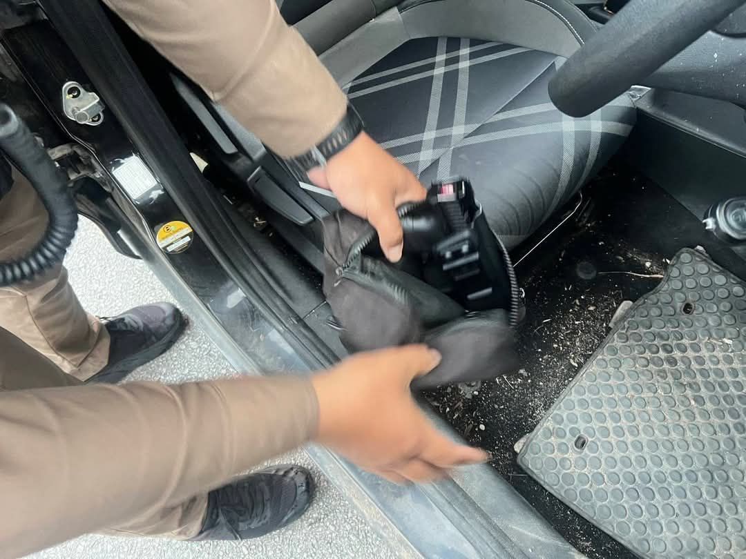 วันที่ 9 มิ.ย.68 เวลา 18.45 น. เจ้าหน้าที่ตำรวจสายตรวจ สภ.ภูพิงคราชนิเวศน์ ขณะออกตรวจพบรถยนต์ต้องสงสัย ไม่ติดแผ่นป้ายทะเบียน จึงเรียกให้หยุดเพื่อขอตรวจสอบและตรวจค้น อึ้ง !! พบอาวุธปืน และเครื่องกระสุนปืนพร้อมใช้งาน โดยการอำนวยการของพ.ต.อ.มนัสชัย อินทร์เถื่อน ผกก.สภ.ภูพิงคราชนิเวศน์ พ.ต.ท.จิรัฐติพงษ์ เลิศวิริยานันท์ รอง ผกก.ป.ฯ พ.ต.ท.อมรเทพ สุขันธ์ สวป.ฯสั่งการให้ร.ต.ท.สายันต์ กาวีย์ นายร้อยตำรวจเวรป้องกันปราบปราม พร้อมกำลังเจ้าหน้าที่ตำรวจสายตรวจ รวม 6 นาย ร่วมกันจับกุม