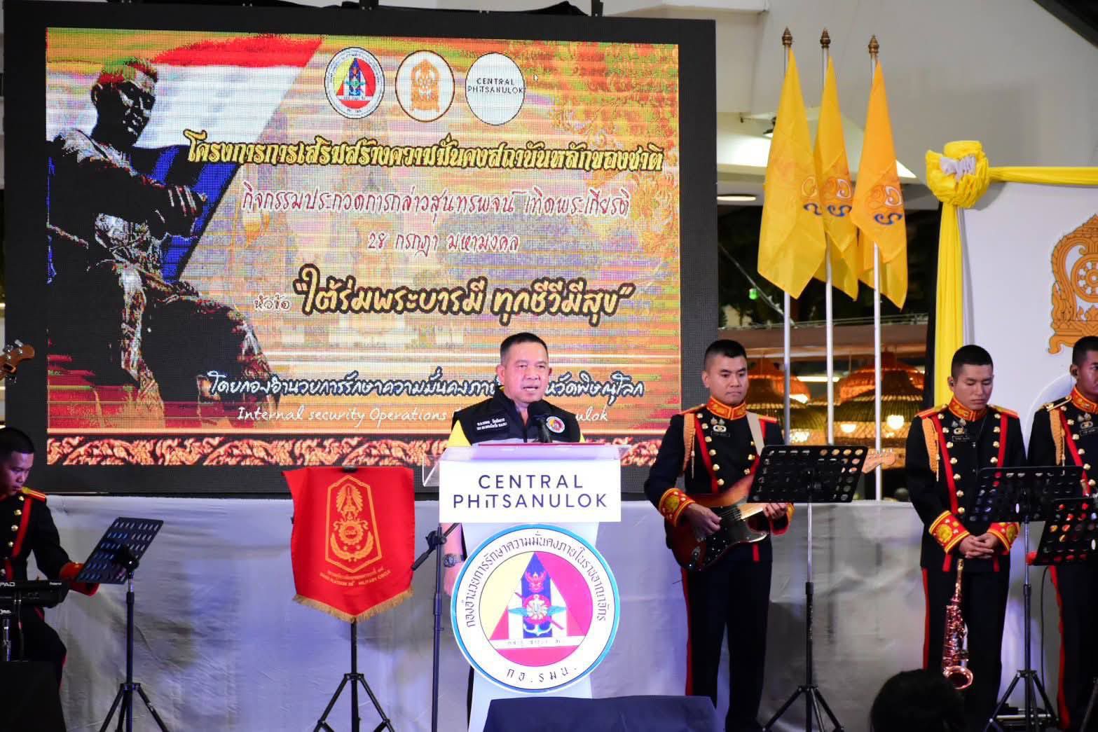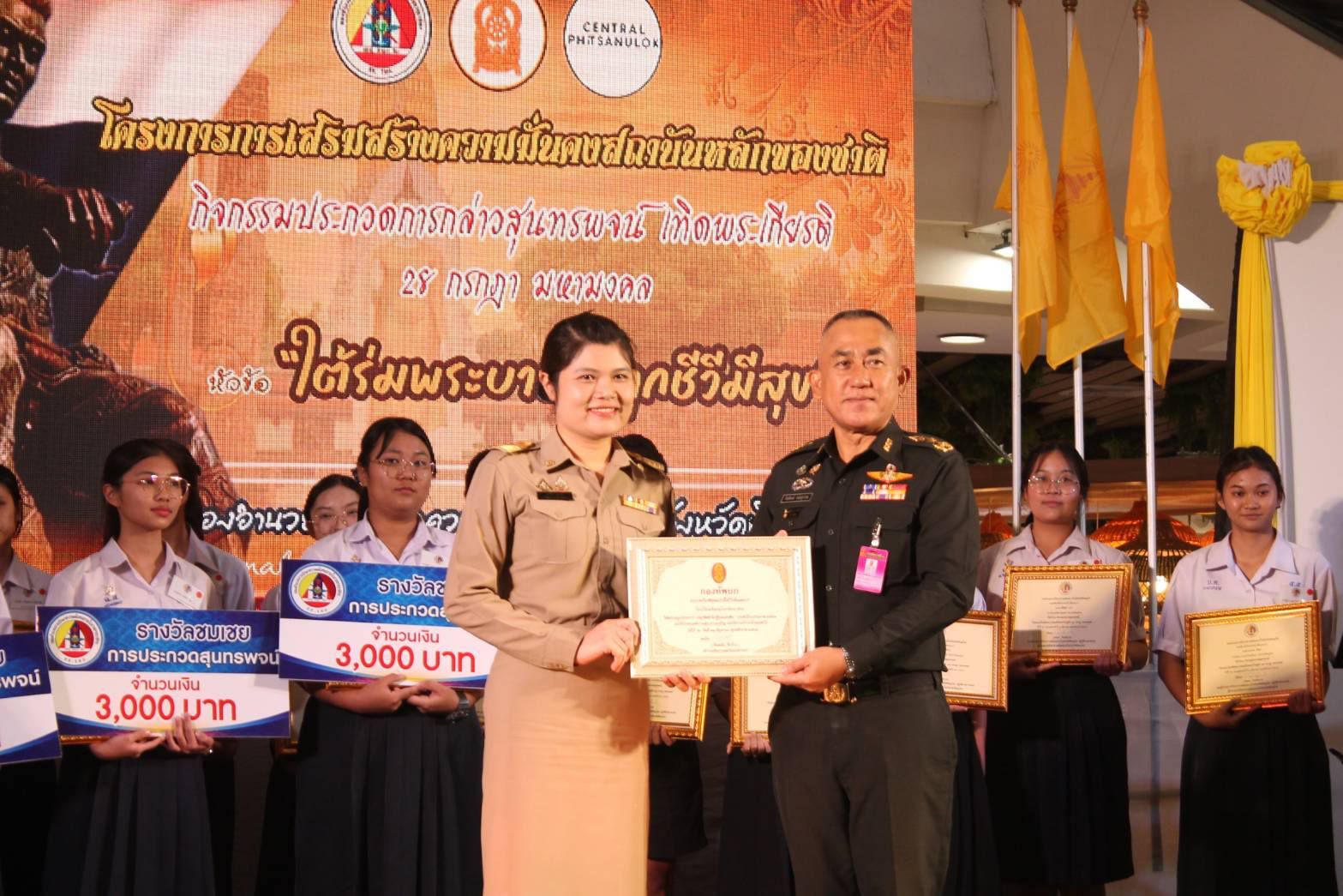 เมื่อวันที่ 12 มิถุนายน 2568 เวลา 13.00 น. ณ ลานโปรโมชั่น ชั้น 1 ศูนย์การค้าเซ็นทรัลพิษณุโลก อำเภอเมือง จังหวัดพิษณุโลก พลโท กิตติพงษ์ แจ่มสุวรรณ แม่ทัพภาคที่ 3 พร้อมด้วย พันเอก หญิง สุชาดา แจ่มสุวรรณ ประธานสมาคมแม่บ้านทหารบก สาขา กองทัพภาคที่ 3 เป็นประธานและมอบโล่รางวัล พร้อมใบประกาศเกียรติคุณกิจกรรมการประกวดการกล่าวสุนทรพจน์เทิดพระเกียรติ พระบาทสมเด็จพระเจ้าอยู่หัว 28 กรกฎา มหามงคล ภายใต้หัวข้อ”ใต้ร่มพระบารมี ทุกชีวีมีสุข” รอบชิงชนะเลิศ ของเยาวชน ระดับมัธยมปลาย โดยมี พันเอก นพดล วัชรจิตบวร รองผู้อำนวยการรักษาความมั่นคงภายในจังหวัดพิษณุโลก ฝ่ายทหาร พันเอก วันปิย แก้วเกษ รองหัวหน้าฝ่ายกิจการมวลชนและสารนิเทศ กองอำนวยการรักษาความมั่นคงภายในจังหวัดพิษณุโลก คณะครูและเด็กนักเรียนโรงเรียนและสถานศึกษาในพื้นที่จังหวัดพิษณุโลก หน่วยงานที่เกี่ยวข้อง และประชาชน เข้าร่วมกิจกรรมฯ เพื่อสรรหาตัวแทนของจังหวัดพิษณุโลก ไปชิงชัยต่อในระดับประเทศ ซึ่งมีเยาวชนที่ผ่านการคัดเลือกในรอบแรก ทั้งสิ้น 17 คน ภายในกิจกรรมการประกวดฯ ยังมีการแสดงละครเทิดพระเกียรติประกอบดนตรี และการแสดง แสง เสียง โดยชุดขุนศึกร่วมกับน้องๆจากโรงเรียนพิษณุโลกพิทยาคม ปลุกจิตสำนึก ความรักชาติ รักแผ่นดินให้กับผู้ร่วมกิจกรรมฯ และผู้รับชมภายในงาน