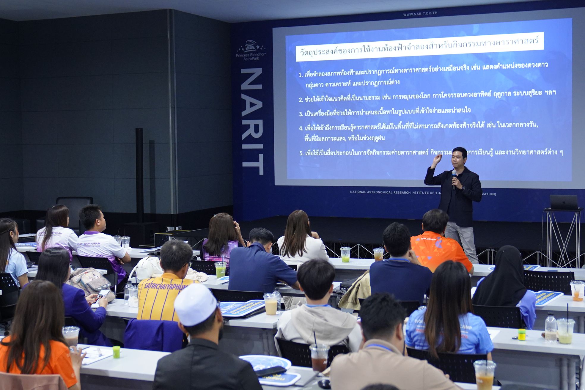 ดร. ศรัณย์ โปษยะจินดา ผู้อำนวยการสถาบันวิจัยดาราศาสตร์แห่งชาติ กล่าวว่า กิจกรรมดาราศาสตร์เป็นเครื่องมือสำคัญที่จะช่วยจุดประกายสร้างแรงบันดาลใจให้กับเยาวชนไทย นำไปสู่อาชีพในอนาคต ทั้งในสายวิทยาศาสตร์ วิศวกรรม แพทยศาสตร์ และสาขาอื่น ๆ ที่เกี่ยวข้อง ประเทศไทยสามารถก้าวสู่การพัฒนาอย่างมั่นคง โดยศึกษาแนวทางจากประเทศในเอเชียที่มีบริบทใกล้เคียงและประสบความสำเร็จในระดับโลก เช่น ญี่ปุ่น จีน เกาหลีใต้ สิงคโปร์ และฮ่องกง ซึ่งมีแรงงานกว่า 70% อยู่ในภาควิทยาศาสตร์และเทคโนโลยี ขณะที่ประเทศไทยมีเพียง 30% เท่านั้น ปัญหานี้เป็นหนึ่งในสาเหตุที่ทำให้ประเทศไทยยังติดกับดักรายได้ปานกลางค่อนไปทางสูงมาอย่างยาวนาน พร้อมเน้นย้ำว่า “ไม่มีทางเลือกอื่นในการพัฒนาประเทศอย่างยั่งยืน หากปราศจากวิทยาศาสตร์และเทคโนโลยี”