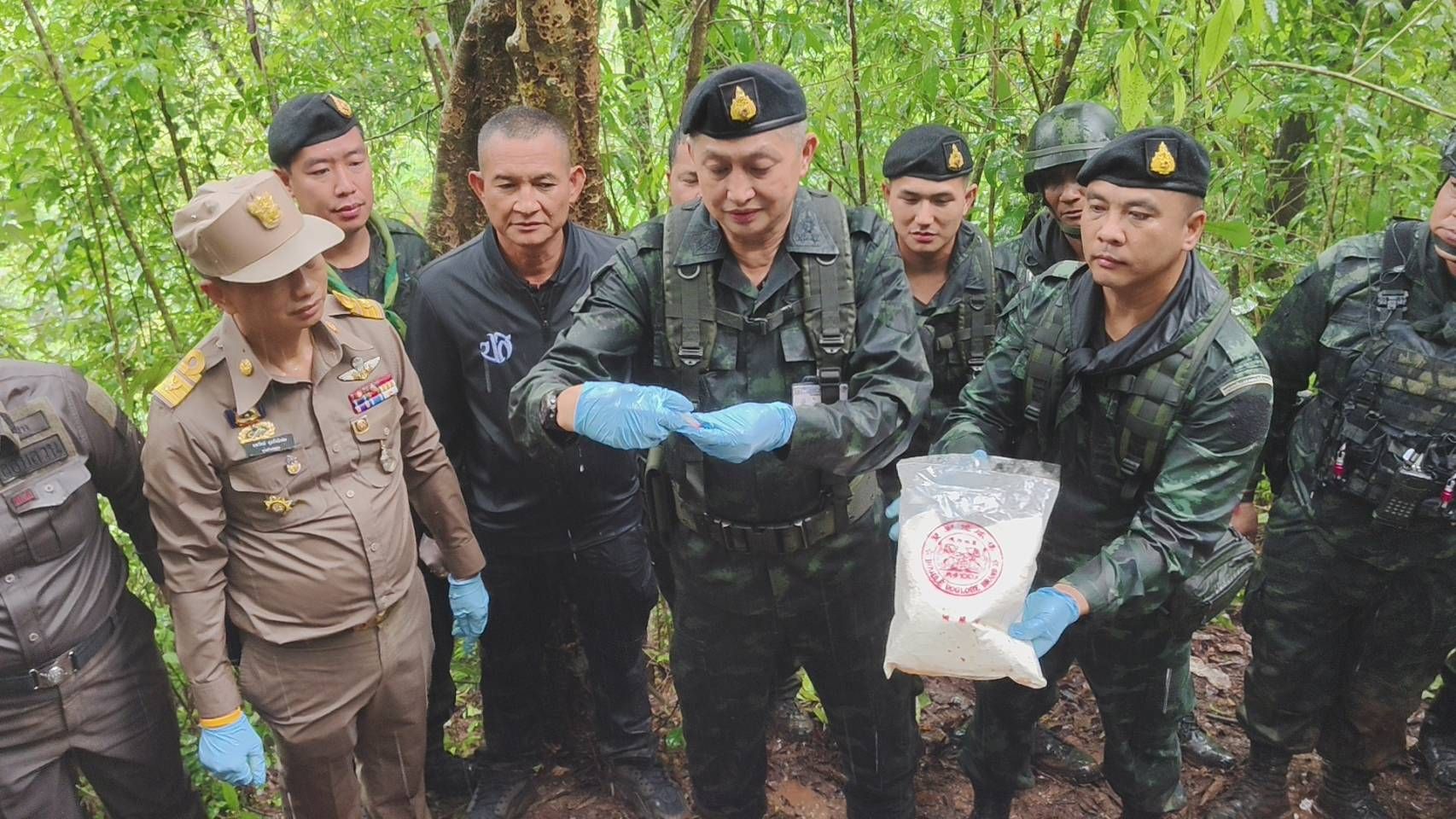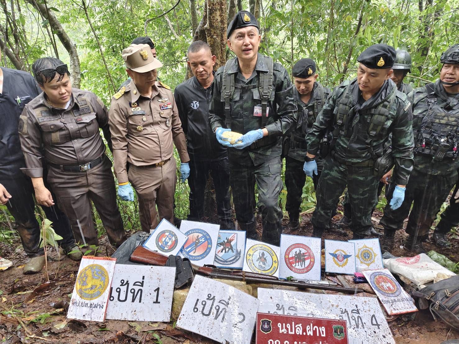 จนกระทั่งเมื่อ 13 มิถุนายน 2568 เวลา 05.30 น. ขณะปฏิบัติหน้าที่ได้ตรวจพบกลุ่มบุคคลต้องสงสัย ประมาณ 6 – 8 คน แบกกระสอบดัดแปลงเป็นเป้สะพายหลัง หน่วยจึงให้สัญญาณให้หยุด แต่กลุ่มขบวนการฯ ใช้อาวุธไม่ทราบชนิดยิงมายังฝ่ายเรา จนเกิดการปะทะ ประมาณ 10 นาที ผลการปะทะฝ่ายเราปลอดภัย กลุ่มขบวนการเสียชีวิต 4 ราย ส่วนที่เหลือ อาศัยห้วงทัศน์วิสัยจำกัดและความชำนาญในพื้นที่หลบหนีไปได้ หน่วยจึงได้จัดกำลังเพิ่มเติมจำนวน 3 ชุดปฏิบัติการ วางกำลังเข้าควบคุมพื้นที่เกิดเหตุไว้ และได้ทำการเข้าตรวจสอบของกลางในพื้นที่เกิดเหตุ ตรวจพบเป้กระสอบดัดแปลง จำนวน 4 กระสอบ ภายในบรรจุ ยาเสพติดให้โทษ ประเภท 1 (ยาบ้า) กระสอบละ 100,000 เม็ด รวมประมาณทั้งสิ้น 400,000 เม็ด ปืนพก จำนวน 1 กระบอก และปืนลูกซอง จำนวน 1 กระบอก