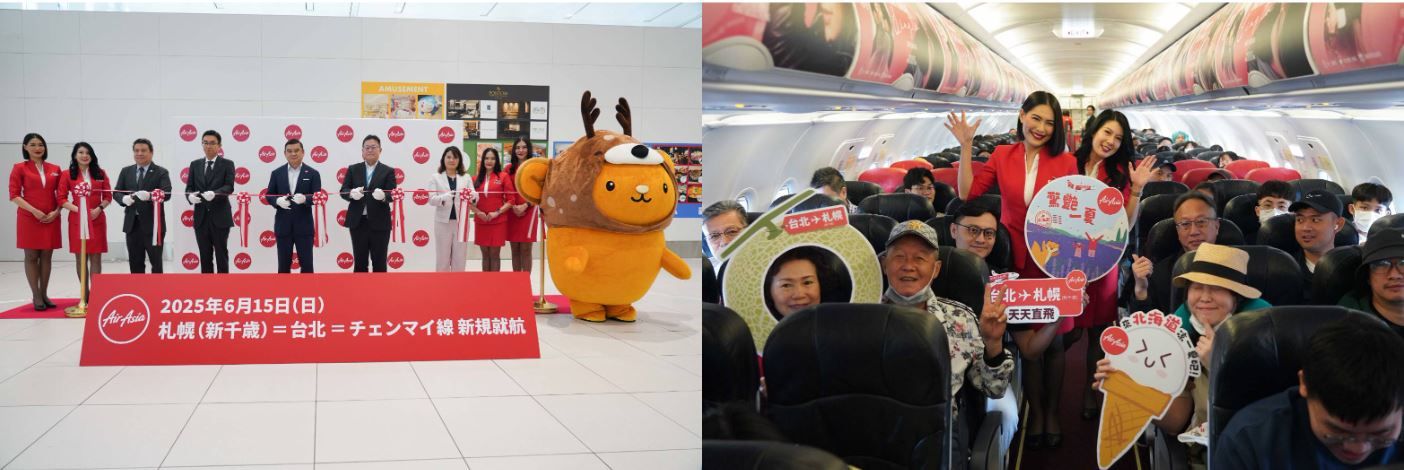 กรุงเทพฯ วันที่ 16 มิถุนายน 2568 – แอร์เอเชียเริ่มให้บริการแล้ว เส้นทาง Fifth Freedom เส้นทางที่ 4 สู่ประเทศญี่ปุ่น เชียงใหม่-ไทเป-ซัปโปโร ให้บริการเที่ยวบินแรกในวันที่ 15 มิถุนายน 2568 พร้อมให้บริการ 7 เที่ยวบินต่อสัปดาห์ ด้วยเครื่องบิน A320 จำนวน 180 ที่นั่ง เชิญชวนเที่ยวญี่ปุ่นในฤดูที่แตกต่าง