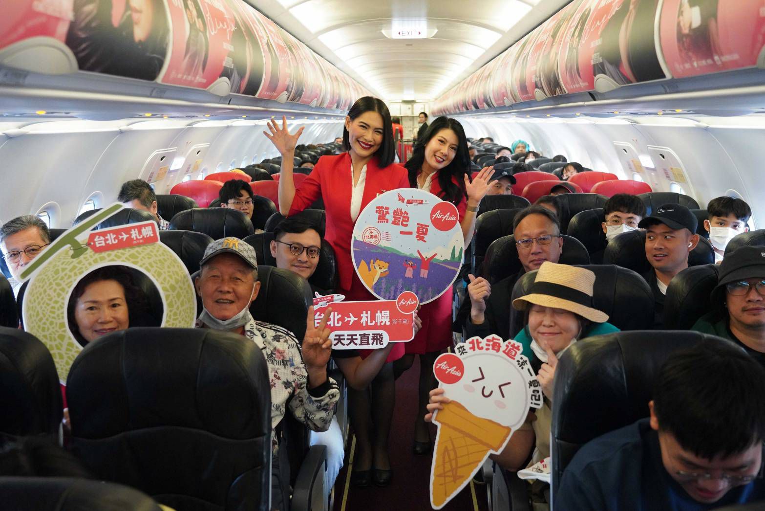 ทั้งนี้ แอร์เอเชียได้จัดกิจกรรมต้อนรับผู้โดยสารในเที่ยวบินแรกที่ท่าอากาศยานเถาหยวน ไทเป และมีพิธีต้อนรับที่ท่าอากาศยานชิโตเซะ ซัปโปโร โดยได้รับเกียรติจากการท่องเที่ยวไต้หวัน ประจำประเทศญี่ปุ่น การท่องเที่ยวฮอกไกโด และท่าอากาศยานชินชิโตเซะ พร้อมกับมาสคอต Kyun-chan มาร่วมต้อนรับผู้โดยสารอย่างอบอุ่น โดยในเที่ยวบินดังกล่าวมีอัตราการขนส่งผู้โดยสารเฉลี่ยที่ร้อยละ 85.