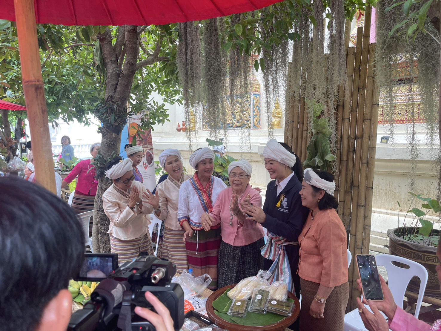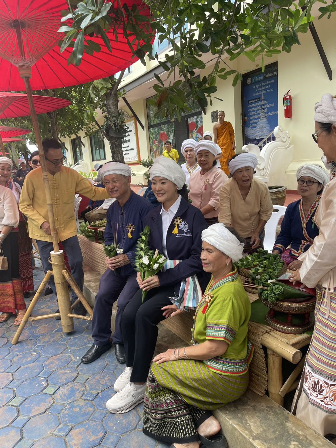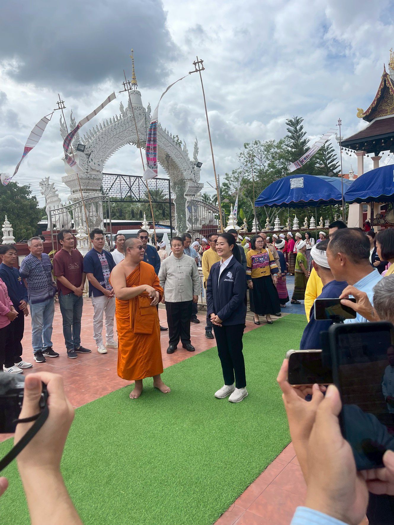จากนั้นนางสาวธีรรัตน์ สำเร็จวาณิชย์ รัฐมนตรีช่วยว่าการกระทรวงมหาดไทยได้เข้าไปนมัสการ พระครูสังฆภารวิมล เจ้าอาวาสวัดบ้านมอญต้นโพธิ์แฝดและได้ขึ้นไปนมัสการพระประธานบนวิหาร และได้ไปกราบไหว้รอดต้นโพธิ์แฝดผูกผ้าแพเพื่อเป็นสิริมงคลและความรุ่งเรืองเสริมสร้างความเป็นสิริมงคลกับตนเองและคณะทำงาน เสร็จเรียบร้อยแล้วนางสาวธีรารัตน์ สำเร็จวาณิชย์ รัฐมนตรี ช่วยว่าการกระทรวงมหาดไทยได้เดินทักทายพี่น้องไทเขิน เยี่ยมชมสินค้าขอชุมชนไทเขิน