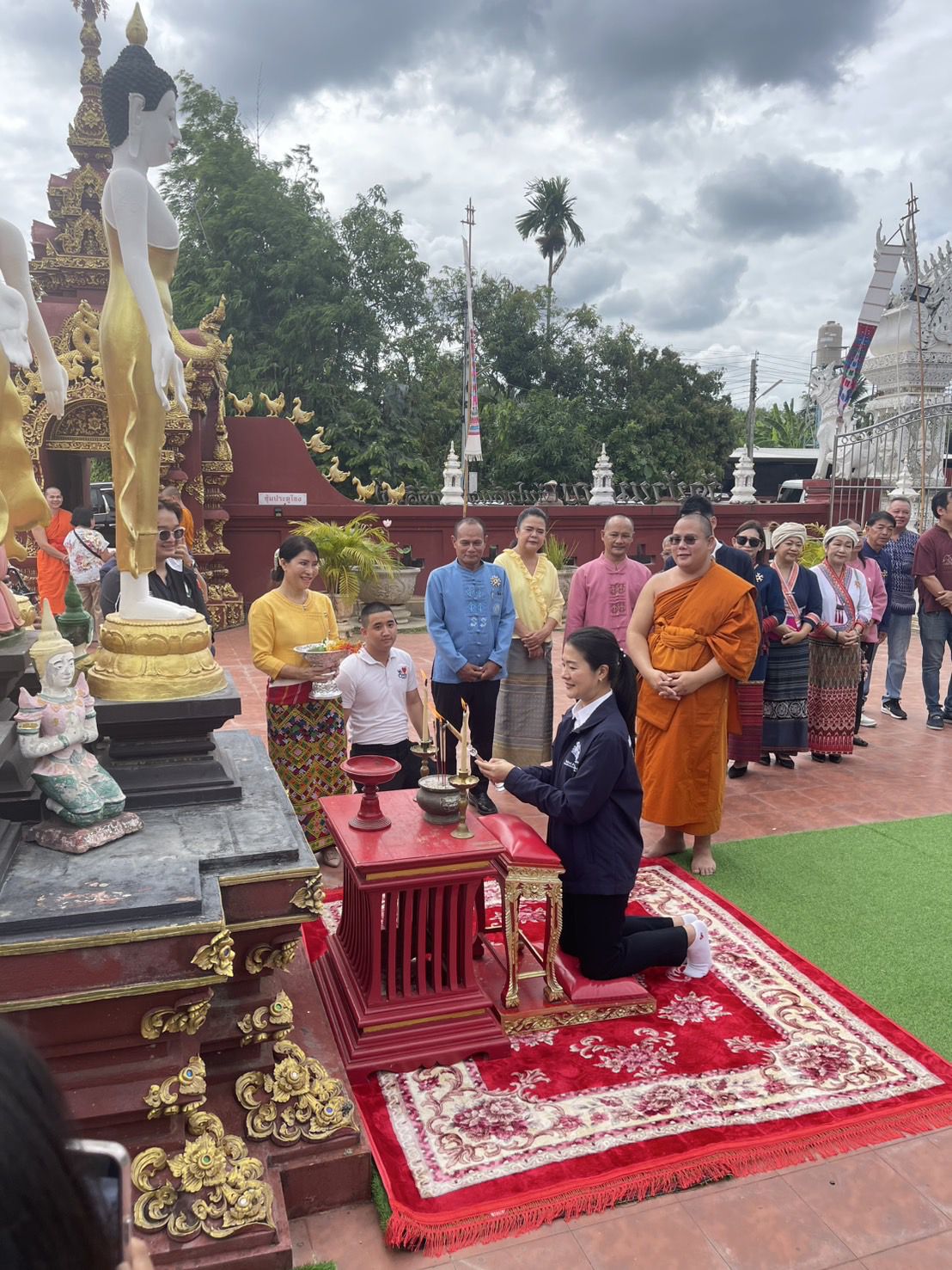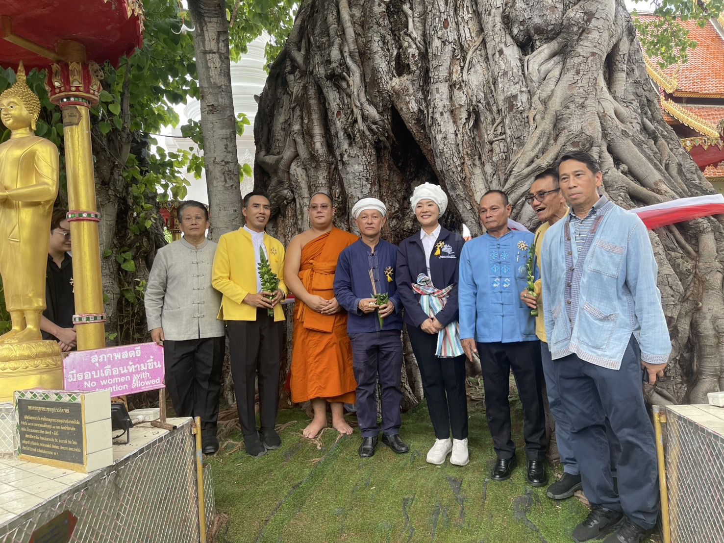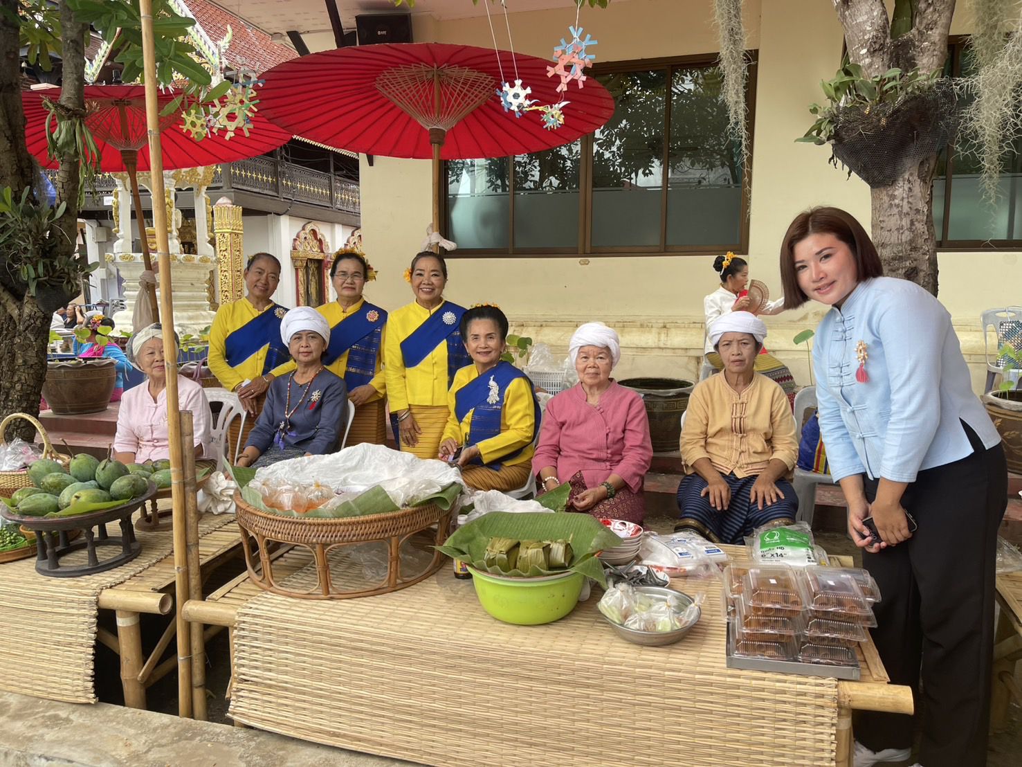 จากนั้นนางสาวธีรรัตน์ สำเร็จวาณิชย์ รัฐมนตรีช่วยว่าการกระทรวงมหาดไทยได้เข้าไปนมัสการ พระครูสังฆภารวิมล เจ้าอาวาสวัดบ้านมอญต้นโพธิ์แฝดและได้ขึ้นไปนมัสการพระประธานบนวิหาร และได้ไปกราบไหว้รอดต้นโพธิ์แฝดผูกผ้าแพเพื่อเป็นสิริมงคลและความรุ่งเรืองเสริมสร้างความเป็นสิริมงคลกับตนเองและคณะทำงาน เสร็จเรียบร้อยแล้วนางสาวธีรารัตน์ สำเร็จวาณิชย์ รัฐมนตรี ช่วยว่าการกระทรวงมหาดไทยได้เดินทักทายพี่น้องไทเขิน เยี่ยมชมสินค้าขอชุมชนไทเขิน
