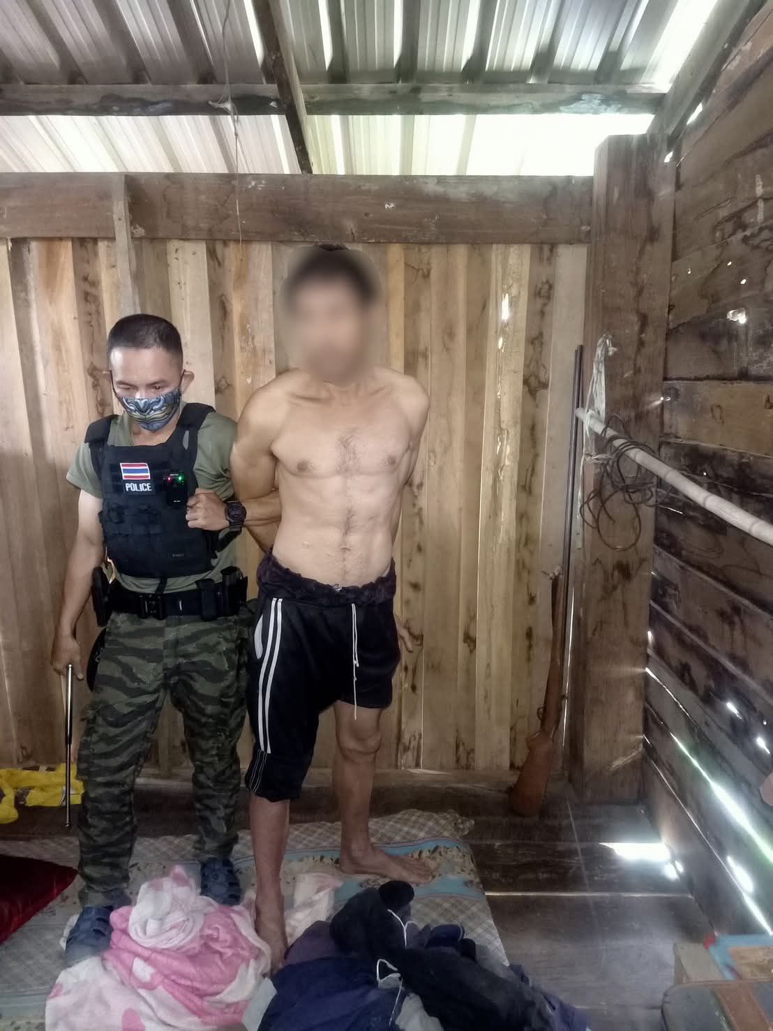 แต่เนื่องจากว่า ที่ผ่านมานายโต้งจะเข้าออกบ้านในช่วงเวลาดึก และไม่ได้พักอาศัยอยู่ประจำที่บ้าน จึงหลุดรอดการจับกุมของเจ้าหน้าที่ตำรวจได้หลายครั้ง ต่อมาเข้าวันนี้ ขณะนายโต้ง ขี่รถจักรยานยนต์จะเข้าบ้าน ได้ขี่รถจักรยานยนต์ปาดหน้า รถยนต์ของสายลับในลักษณะเร่งรีบ สายลับจึงแอบตามไป พบว่านายโต้ง ขี่รถจักรยานยนต์เข้าไปในบ้านของตนเอง สายลับจึงรีบแจ้งเจ้าหน้าที่ตำรวจ เจ้าหน้าที่ตำรวจจึงเข้าไปทำการจับกุมตัวได้ จากนั้นได้ทำการตรวจค้นบ้านพัก ของนายโต้ง พบอาวุธปืนยาวแบบไทยประดิษฐ์ จำนวน 2 กระบอก ที่นายโต้งซุกซ่อนไว้ เจ้าหน้าที่ได้สอบถามเรื่องยาเสพติด นายโต้งรับว่าตนเองพึ่งจะเสพยาบ้าไปก่อนหน้าที่เจ้าหน้าที่ตำรวจจะเข้ามาตรวจค้น จำนวน 2 เม็ด จากการตรวจสอบยืนยันผลจากโรงพยาบาลพบว่าปัสสาวะของนายโต้งมีสารเสพติดในปัสสาวะจริง