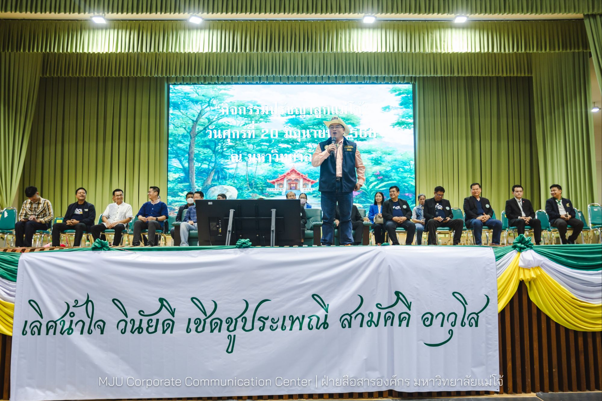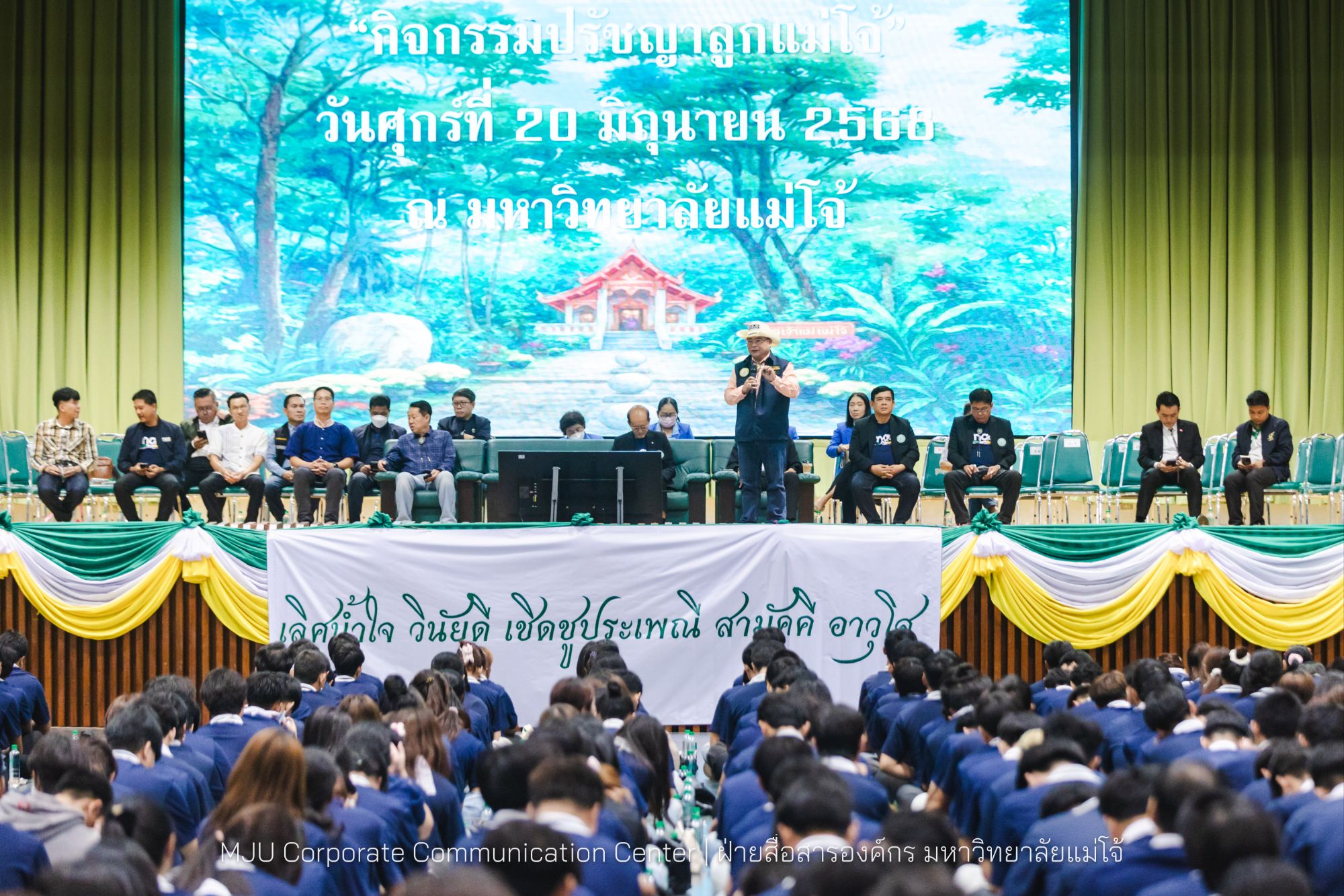วันที่ 20 มิถุนายน 2568 รองศาสตราจารย์ ดร.วีระพล ทองมา อธิการบดีมหาวิทยาลัยแม่โจ้ (แม่โจ้รุ่น 49) เป็นประธานในพิธีเปิดกิจกรรม เรียนรู้ปรัชญาลูกแม่โจ้ พร้อมให้โอวาทและบรรยายพิเศษ ปรัชญาลูกแม่โจ้ “เลิศน้ำใจ วินัยดี เชิดชูประเพณี สามัคคี อาวุโส” โอกาสเดียวกันนี้ ดร.ขุนศรี ทองย้อย นายกสมาคมศิษย์เก่าแม่โจ้ (แม่โจ้รุ่น 51) บรรยายพิเศษ คติพจน์ “มาก่อนเป็นพี่ มาทีหลังเป็นน้อง มาพร้อมกันเป็นเพื่อน” ให้กับนักศึกษาใหม่ โดยมีคณะผู้บริหาร คณาจารย์ เข้าร่วมกิจกรรมและให้กำลังใจแก่นักศึกษาใหม่แม่โจ้ รุ่น 90