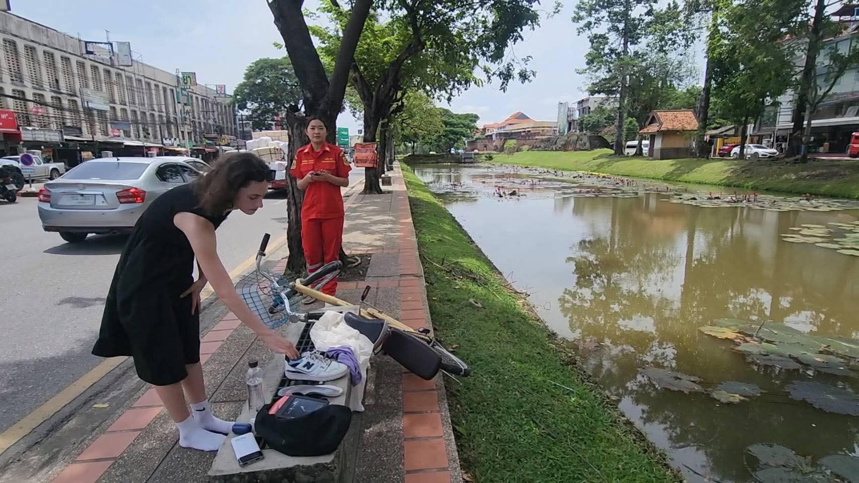 เมื่อช่วงเช้าวันที่ 21 มิ.ย.68 หญิงสาววัย 24 ปี ชาวอเมริกัน ปั่นจักรยานเที่ยวชมเมืองเชียงใหม่ แต่โชคร้าย ขณะปั่นอยู่บนฟุตบาทริมคูเมือง รถเกิดเสียหลักล้มจนโทรศัพท์มือถือกระเด็นตกลงไปในคูเมืองต่อหน้าต่อตา