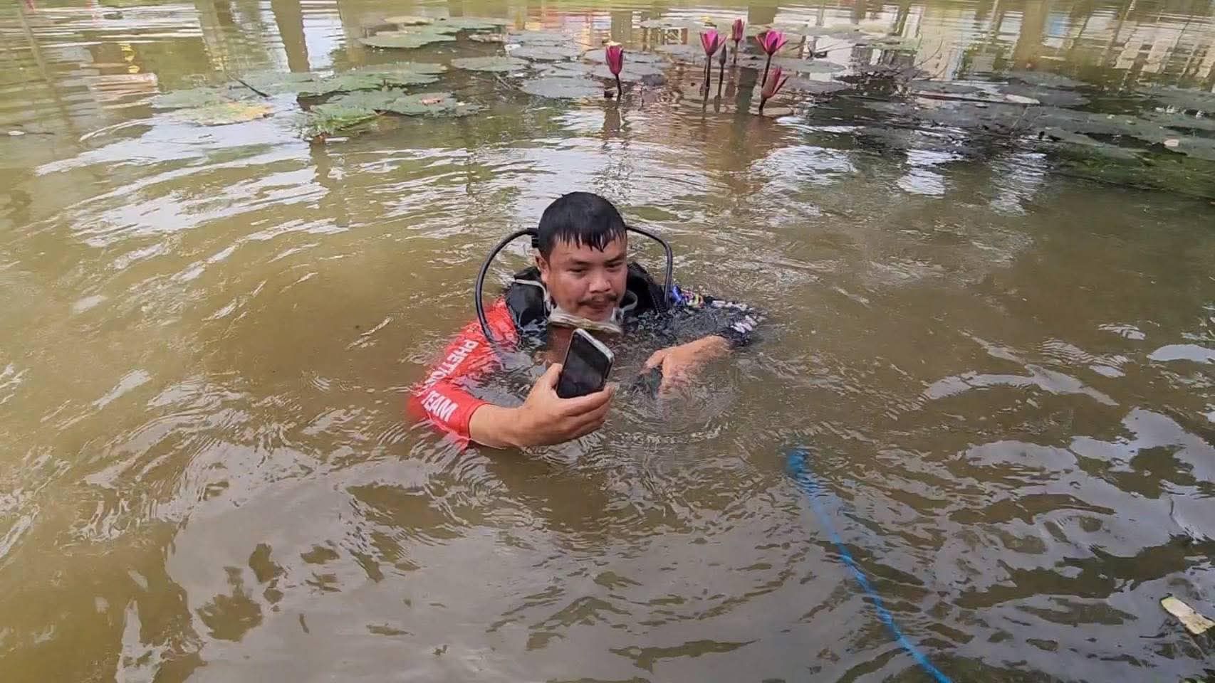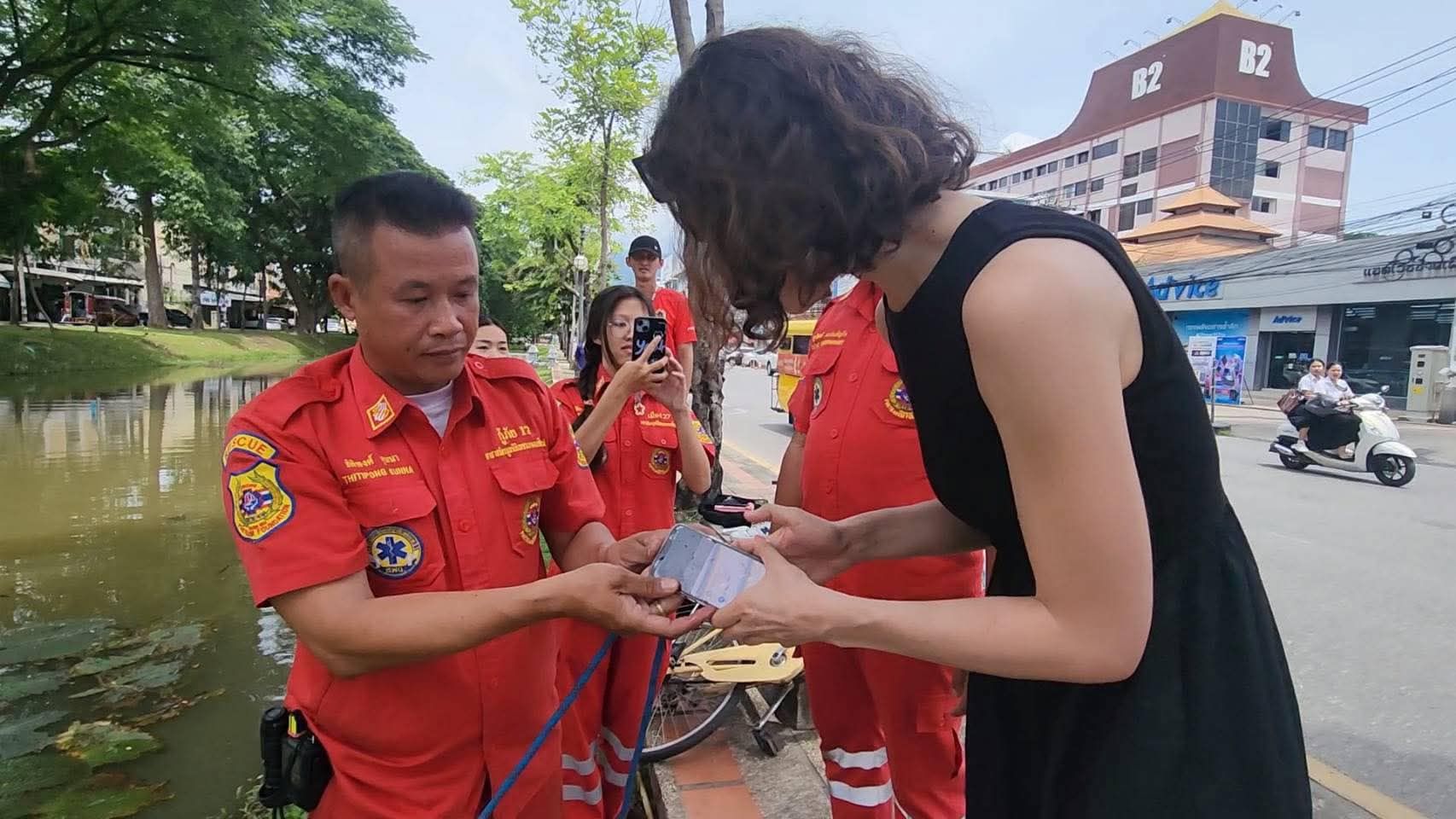 นทท.ชื่นชมกู้ภัยมูลนิธิเพชรเกษมฯ ช่วยเหลือ งมมือถือตกคูเมือง เจอทันก่อนบินกลับบ้าน