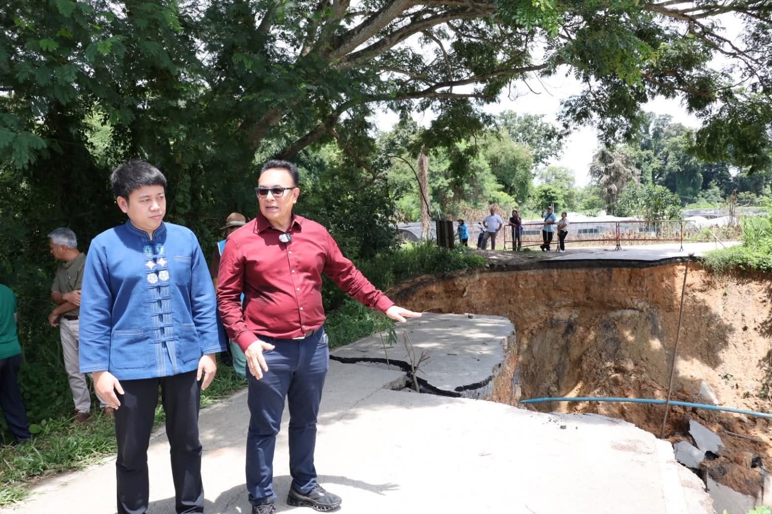 อบจ.เชียงใหม่ รุดตรวจสอบ เร่งซ่อมแซม ถนนทรุดตัว