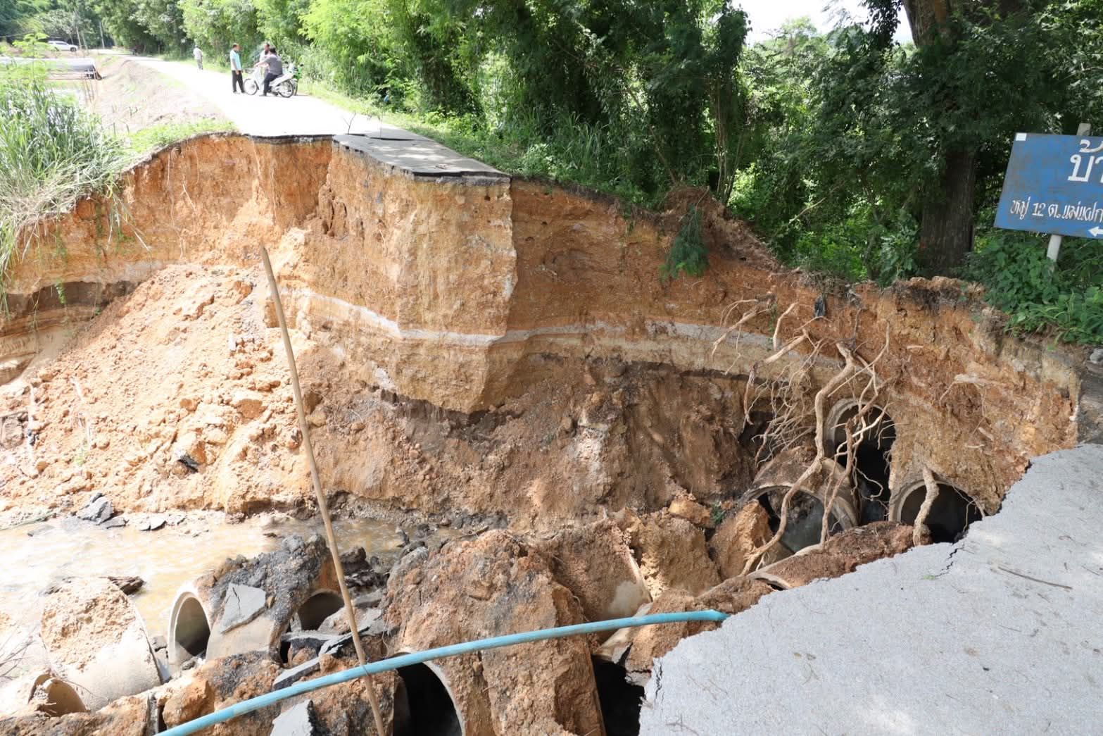 โดยนายสมชาติ วัฒนากล้า เปิดเผยหลังการเข้าตรวจสอบสภาพถนนว่า หลังจากเกิดการทรุดตัวของถนนดังกล่าว จนเป็นหลุมกว้าง ทำให้ถนนเชื่อมต่อเส้นทางระหว่าง 2 อำเภอ ถูกตัดขาด