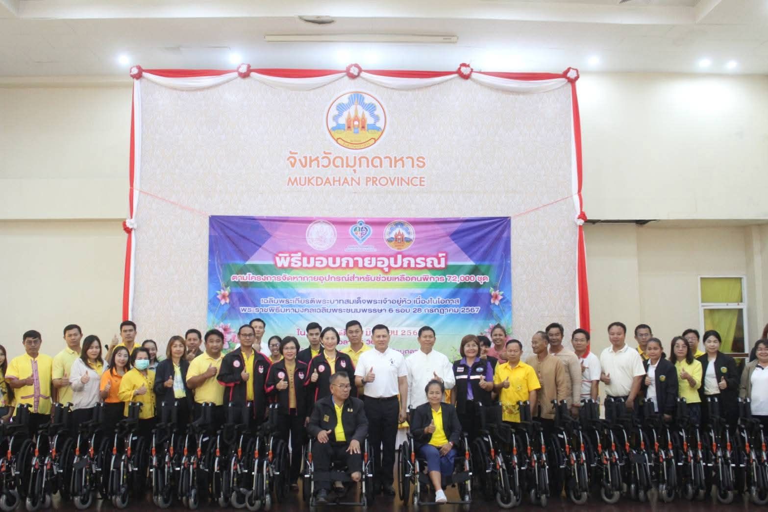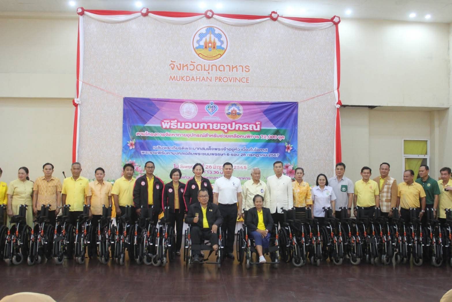 เมื่อวันที่ 26 มิถุนายน 2568 เวลา 13.30 น. ณ ห้องประชุมแก้วมุกดา ชั้น 1 นายวรญาณ บุญณราช ผู้ว่าราชการจังหวัดมุกดาหาร เป็นประธานในพิธีการมอบกายอุปกรณ์ ตามโครงการจัดหากายอุปกรณ์สำหรับช่วยเหลือคนพิการ 72,000 ชุด เฉลิมพระเกียรติพระบาทสมเด็จพระเจ้าอยู่หัว เนื่องในโอกาสพระราชพิธีมหามงคลเฉลิมพระชนมพรรษา 6 รอบ 28 กรกฎาคม 2567