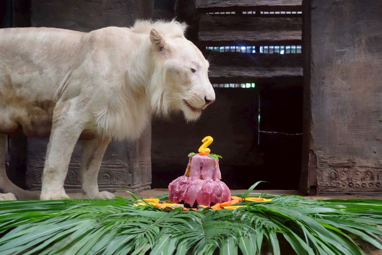 เชียงใหม่ไนท์ซาฟารี ฉลองวันเกิด “จาคอป” ลูกสิงโตขาว ครบ 2 ขวบ