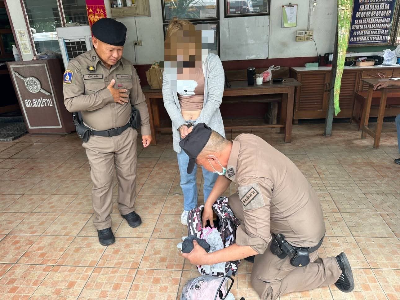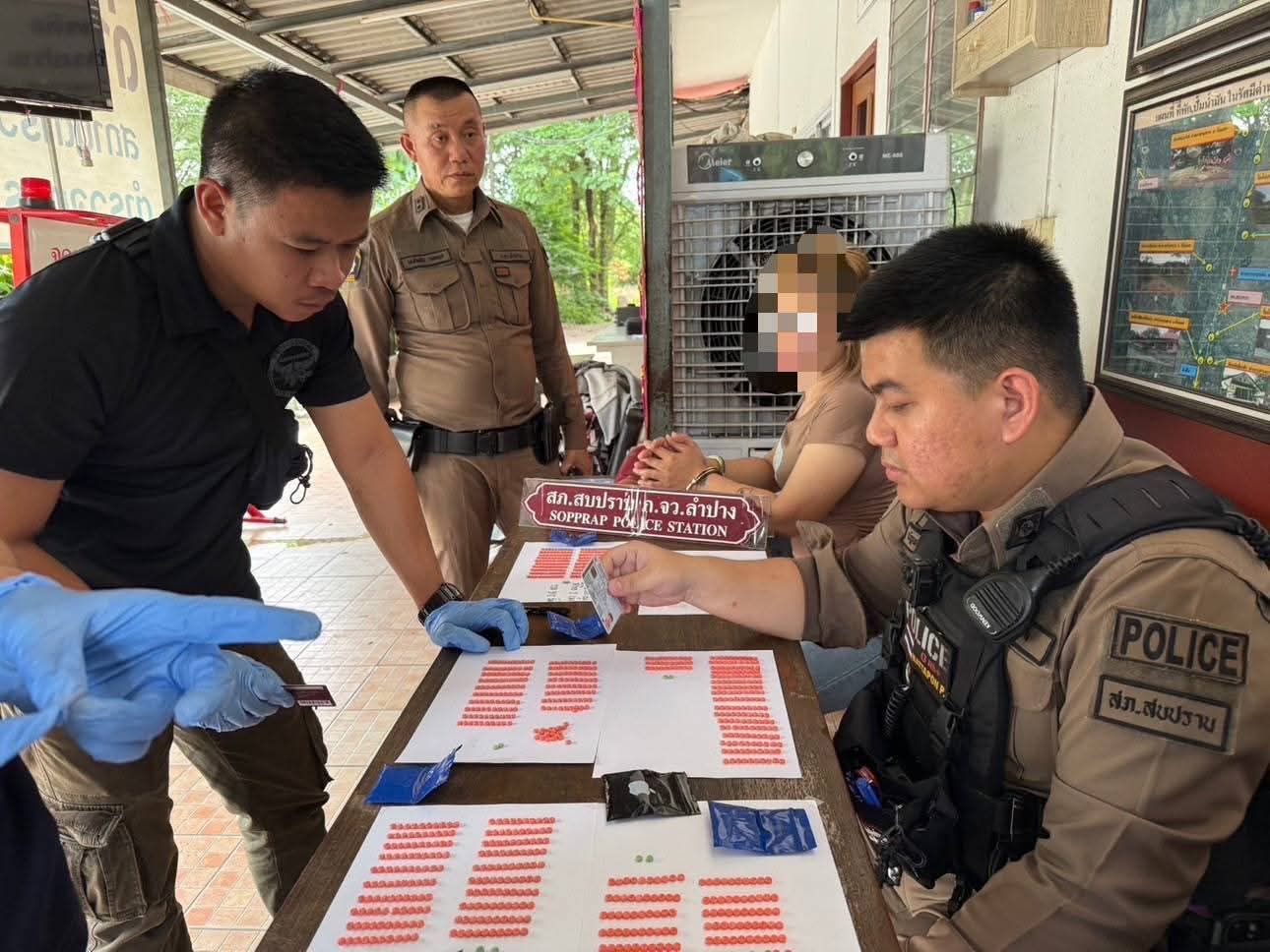 ตร.ด่านตรวจสภ.สบปราบ ตรวจหญิงมีพิรุจพบยาบ้าซุกซ่อนอยู่ 1,221 เม็ด
