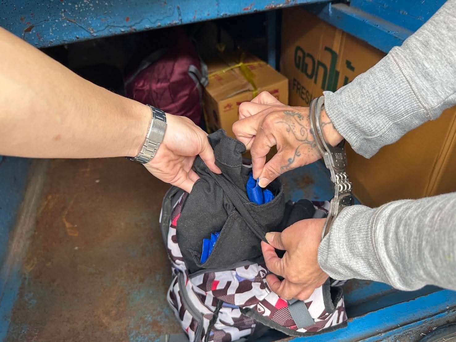 เจ้าหน้าที่จึงได้ขอทำการตรวจค้นตามร่างกายไม่พบยาเสพติด และขอตรวจถุงใส่หน้ากากอนามัยที่หญิงสาวพกติดตัวมาด้วยพบยาบ้าซุกซ่อนอยู่จำนวนหนึ่ง นอกจากนั้นเจ้าหน้าที่ขอตรวจค้นกระเป๋าสัมภาระของหญิงสาวพบยาบ้าอีกจำนวนหนึ่งซุกซ่อนอยู่ นับรวมกันได้ 1,221 เม็ด ซึ่งหญิงสาวก็ได้ยอมรับกับเจ้าหน้าที่ว่ายาบ้าทั้งหมด เป็นของตนเองจริง