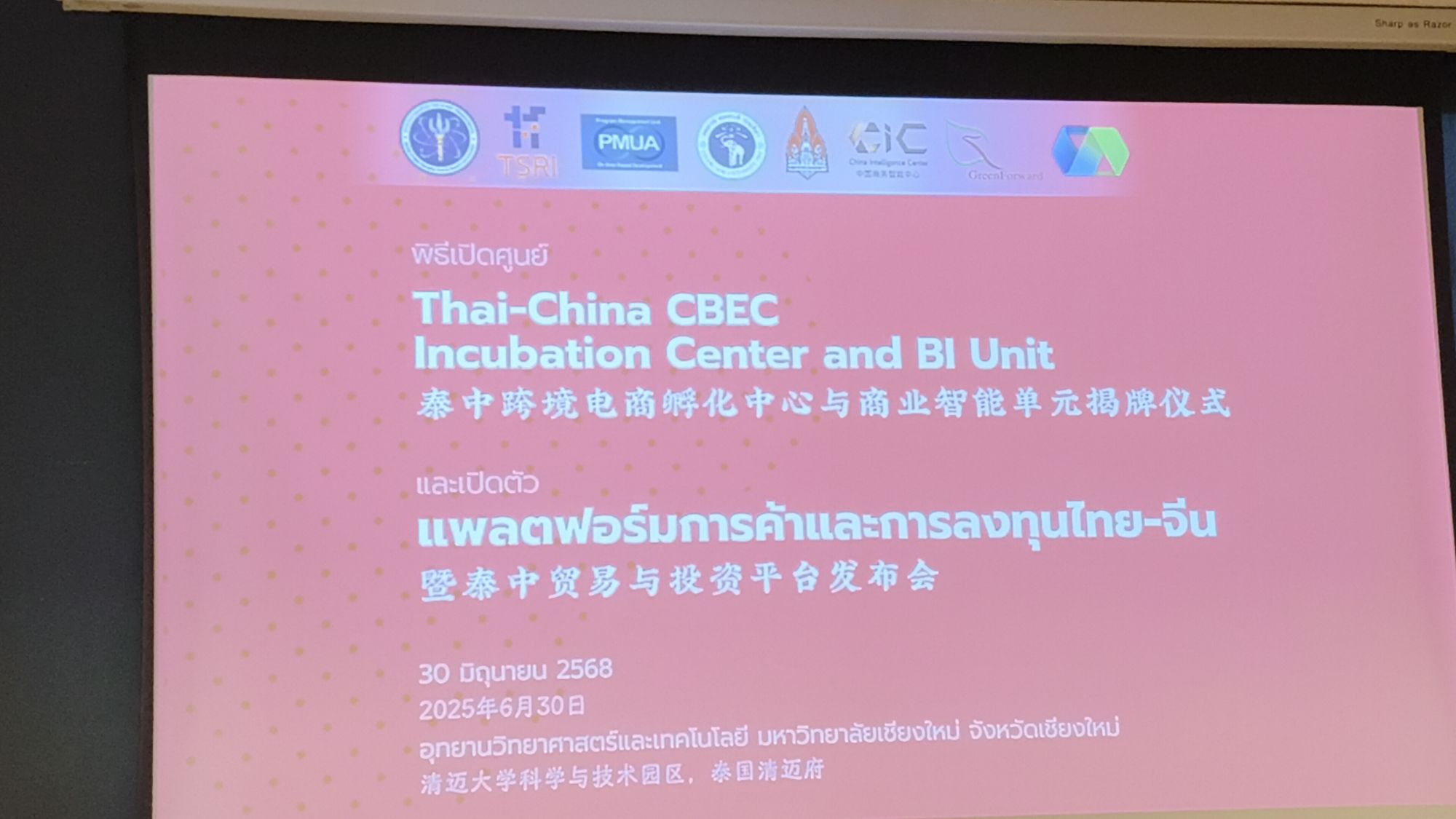 ยังมีการเปิดตัว ศูนย์ Thai-China CBEC Incubation Center and BI Unit ซึ่งมีบทบาทสำคัญในการพัฒนาศักยภาพการแข่งขันของผู้ประกอบการ SMEs ไทยสู่ตลาดจีน โดย ดร.ดนัยธัญ พงษ์พัชราธรเทพ ผู้อำนวยการศูนย์ ได้แนะนำศูนย์และอธิบายถึงการสนับสนุนผู้ประกอบการผ่านการบ่มเพาะและการใช้ข้อมูลเชิงลึก (Business Intelligence) เพื่อเพิ่มขีดความสามารถในการแข่งขันของสินค้าไทยในตลาดประเทศจีน
