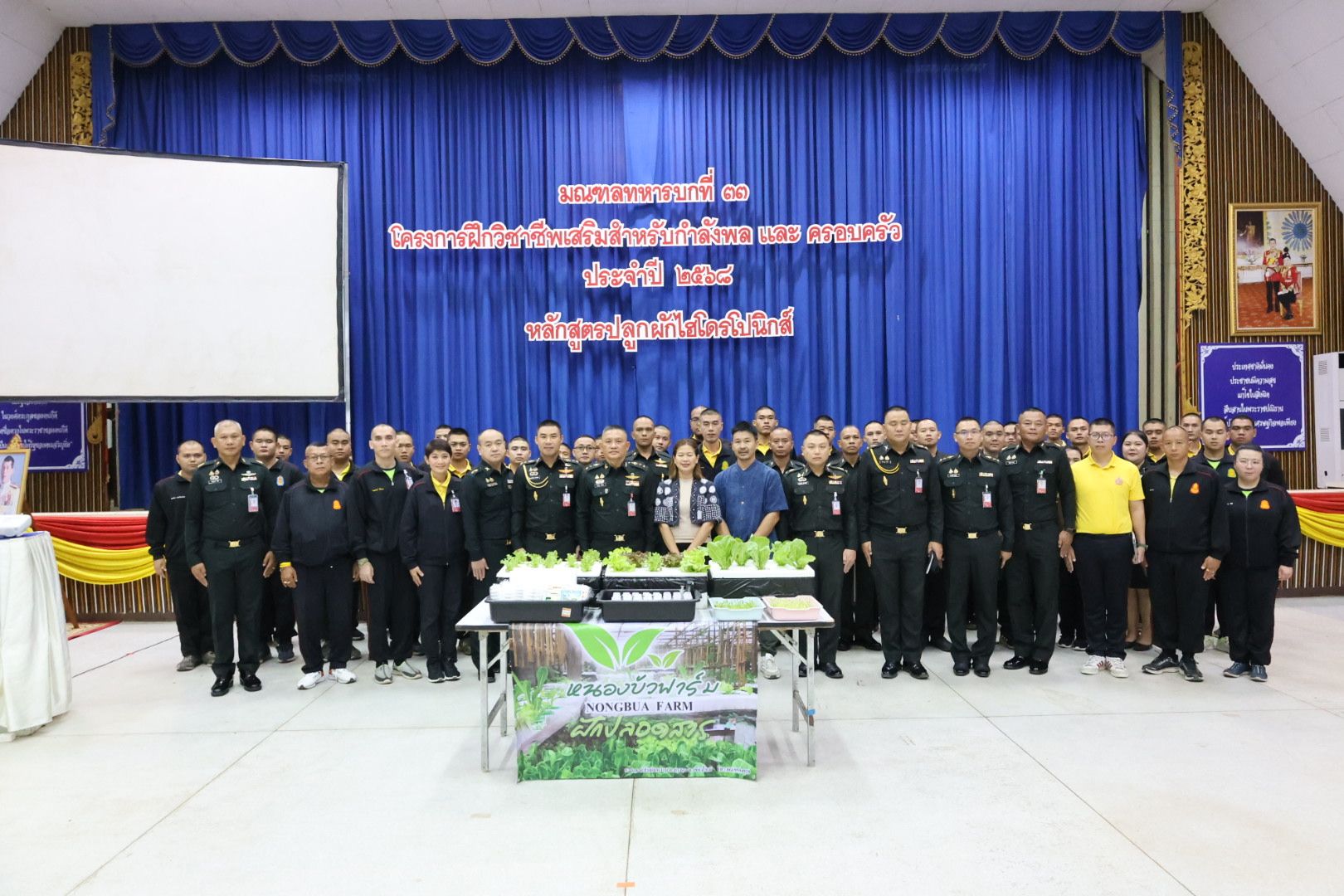 เมื่อวันที่ 2 ก.ค. 68 เวลา 08.30 น. พ.อ.สันติสุข ศรีเมือง รอง ผบ.มทบ.33 เป็นประธานในพิธีเปิดโครงการฝึกอบรมอาชีพสำหรับกำลังพล และครอบครัว ประจำปี 2568 หลักสูตรการปลูกผักไฮโดรโปนิกส์ โดยวิทยากรจากหนองบัวฟาร์ม ณ สโมสรค่ายกาวิละ โดยมีกำลังพล และครอบครัว รวมถึงทหารกองประจำการให้ความสนใจเข้าร่วมโครงการฯ จำนวน 85 นาย.