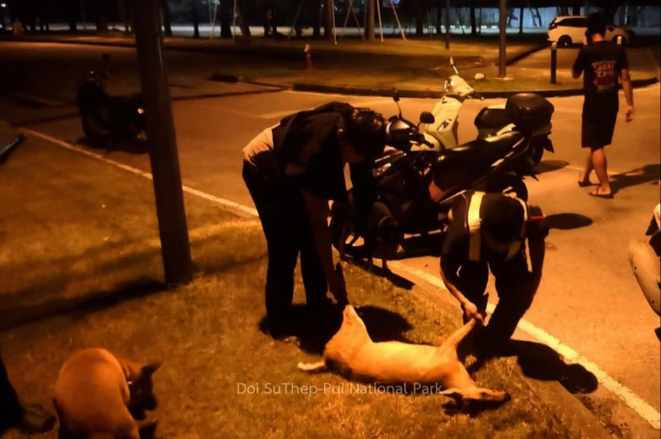 เมื่อวันที่ 1 กรกฎาคม 2568 เวลาประมาณ 20.30 น. อุทยานแห่งชาติดอยสุเทพ-ปุย ได้รับแจ้งจากเจ้าหน้าที่รักษาความปลอดภัย คณะเกษตร มหาวิทยาลัยเชียงใหม่ ว่ามีเก้งได้รับบาดเจ็บสาหัสจากการถูกสุนัขจรจัดไล่กัดและพุ่งชนรั้วลวดหนามอย่างรุนแรง ภายในพื้นที่ของคณะเกษตรฯ