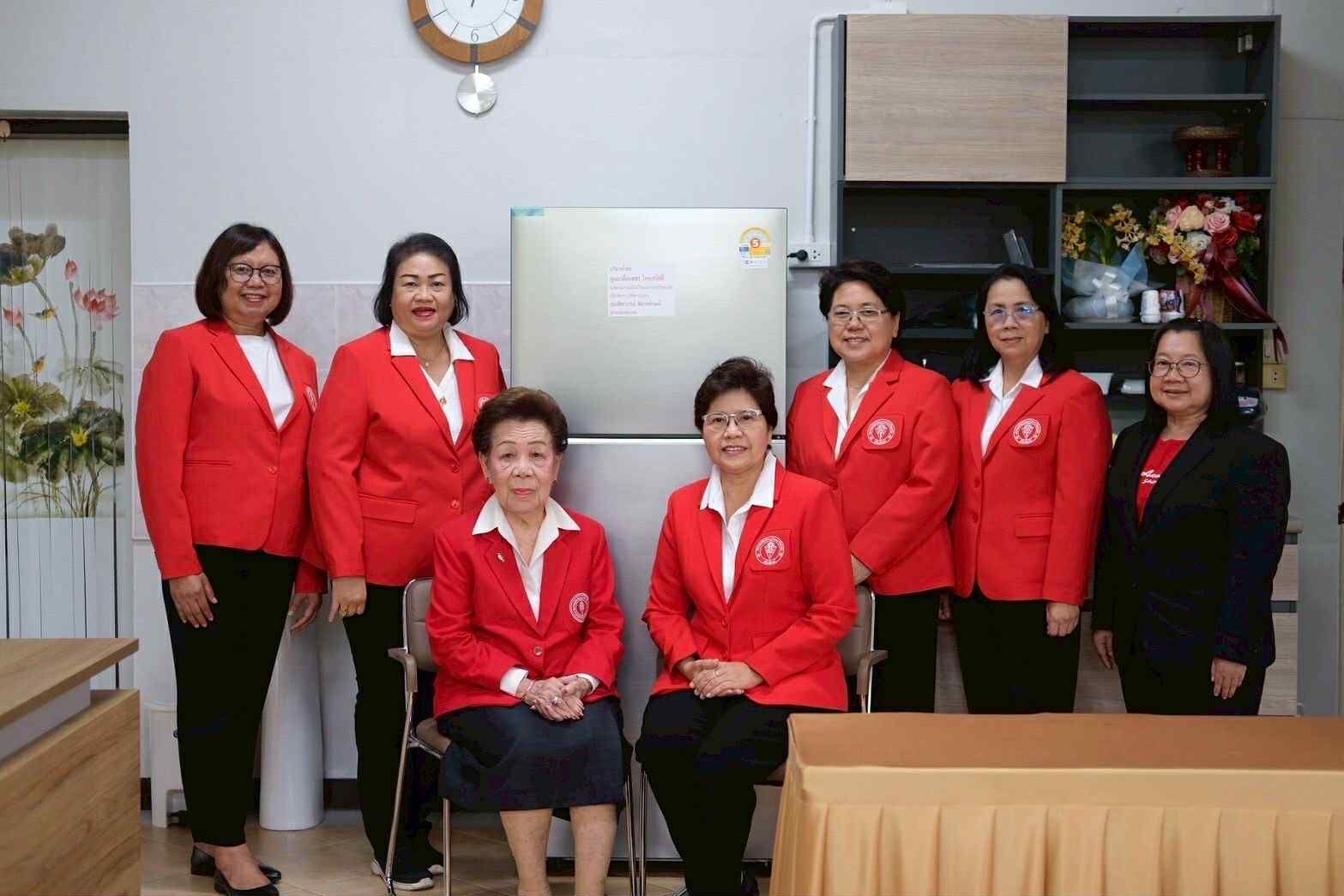 คุณปรานอม ก้านเหลือง เลขานุการ/คุณแสงทิตย์ ชัยตาน ผู้ช่วยเหรัญญิก/คุณจิรวัณย์ นันทวงศ์ ผู้ช่วยเหรัญญิก ร่วมส่งมอบ ตู้เย็น ยี่ห้อ ซัมซุง ขนาด 13.9 คิว และไมโครเวฟเพื่อใช้ในห้องประชุมสมาคมนักเรียนเก่าดาราวิทยาลัย (บริจาคโดย คุณเกล็ดเพชร ไทยสวัสดิ์ นายกสมาคมนักเรียนเก่าดาราวิทยาลัย และ คุณพัชราภรณ์ พิลาศลักษณ์ อุปนายก) พร้อมกันนี้ ได้มอบกระจกขนาดใหญ่เพื่อดูความเรียบร้อย