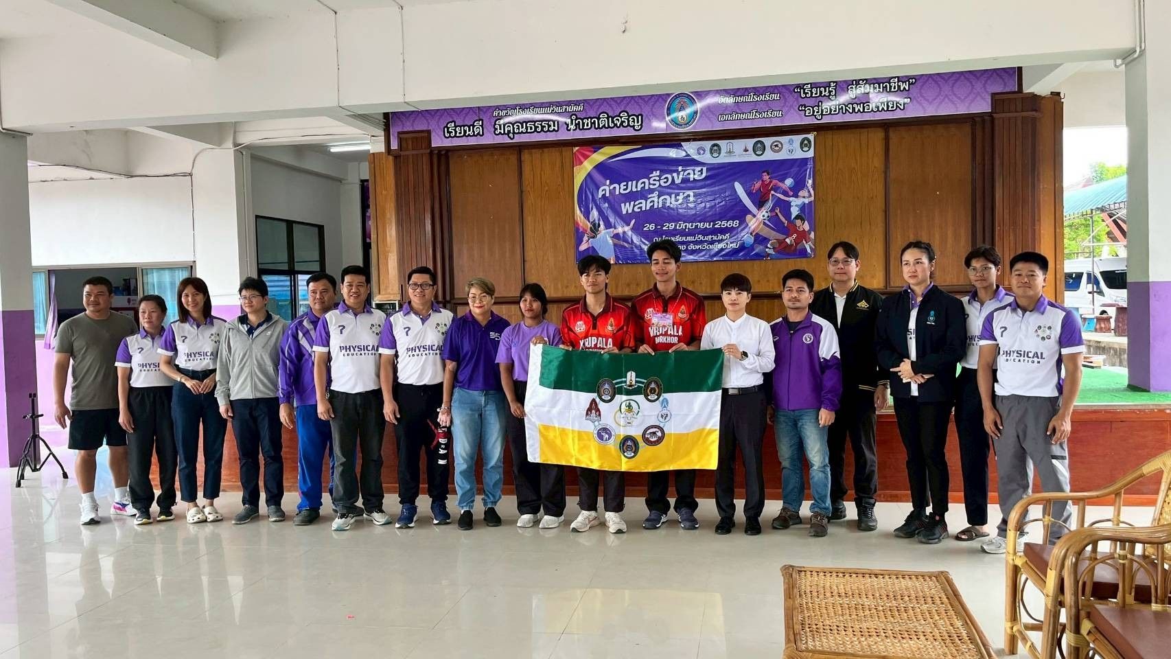 เมื่อวันที่ 27 มิถุนายน 2568 นางจริยา วงศ์สุวรรณ์ นายอำเภอแม่วาง เป็นประธานเปิดโครงการสานสัมพันธ์เครือข่ายพลศึกษา พัฒนาวิชาชีพสู่โรงเรียนและชุมชน เปิดกิจกรรมกีฬานันทนาการและกีฬาสากลให้กับนักเรียน โรงเรียนแม่วินสามัคคี โดยนักเรียนชั้นมัธยมศึกษาโรงเรียนแม่วินสามัคคี ได้ร่วมทำกิจกรรม ซึ่งนักศึกษาได้จัดกิจกรรมให้แก่น้อง ๆ เป็นฐานการเรียนรู้ โดยมีรุ่นพี่นักศึกษาเป็นผู้ให้ความรู้ในแต่ละฐาน ทำให้นักเรียนได้ฝึกสมรรถภาพทางร่างกาย และเกิดความสนุกสนานในการทำกิจกรรม นักศึกษาหลักสูตรครุศาสตร์ วิชาเอกพลศึกษา 7 สถาบันได้จัดค่ายเครือข่ายพลศึกษา วันที่ 27-29 มิถุนายน 2568 ณ โรงเรียนแม่วินสามัคคี 1. มหาวิทยาลัยเชียงใหม่ 2. มหาวิทยาลัยราชภัฏเชียงใหม่ 3. มหาวิทยาลัยราชภัฎเพชรบูรณ์ 4. มหาวิทยาลัยนเรศวร 5. มหาวิทยาลัยขอนแก่น 6. มหาวิทยาลัยมหาสารคาม 7. มหาวิทยาลัยทักษิณ โดยมีนายนิเวศน์ เต๋จา ผอ.โรงเรียนแม่วินสามัคคี กล่าวให้การต้อนรับ.