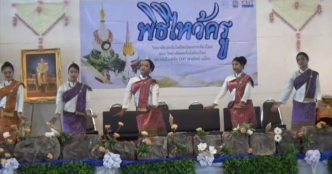 วิทยาลัยเทคโนโลยีพาณิชยาการเชียงใหม่ และวิทยาลัยเทคโนโลยีเมโทร สถาบันในเครือ CMT พาณิชย์ – เมโทร จัดพิธีไหว้ครูประจำปี 2568 โดยมี ดร.พัชรีวรรณ กิจมี ผู้อำนวยการวิทยาลัยเทคโนโลยีพาณิชยการเชียงใหม่ และนายสุวัฒน์ สุริยาวงศ์ ผู้อำนวยการวิทยาลัยเทคโนโลยีเมโทร และคณาจารย์ รวมทั้งนักศึกษารุ่นพี่ และนักศึกษาน้องใหม่ มาร่วมกิจกรรม พร้อมทั้งมีการรำบูชาครู