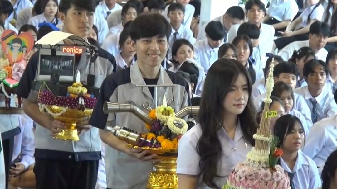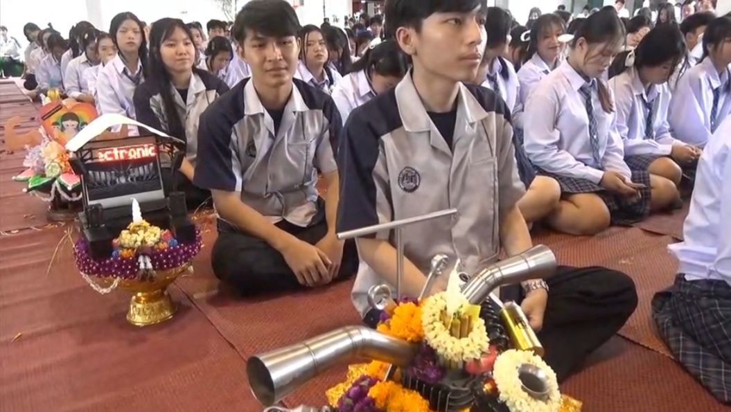 ข่าววาไรตี้ » (มีคลิป) สถาบันในเครือ CMT “พาณิชย์  – เมโทร”  จัดพิธีไหว้ครูปี 68 นร.ไอเดียเก๋นำ “ท่อไอเสีย คาบูเรเตอร์ รถจยย. มาทำพานไหว้ครู”