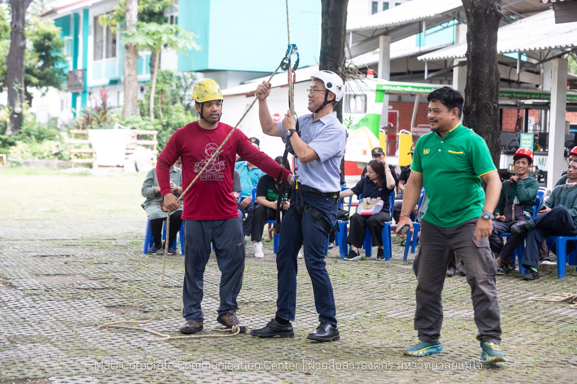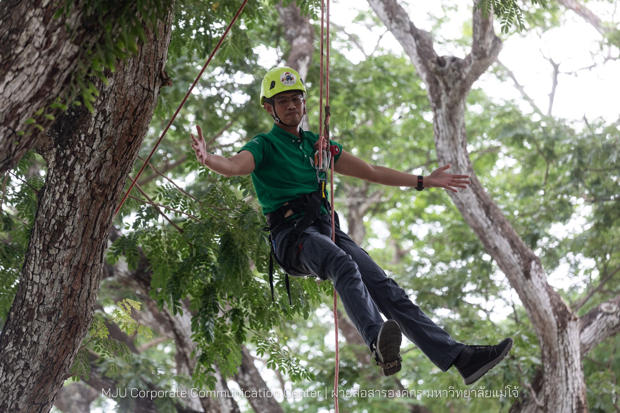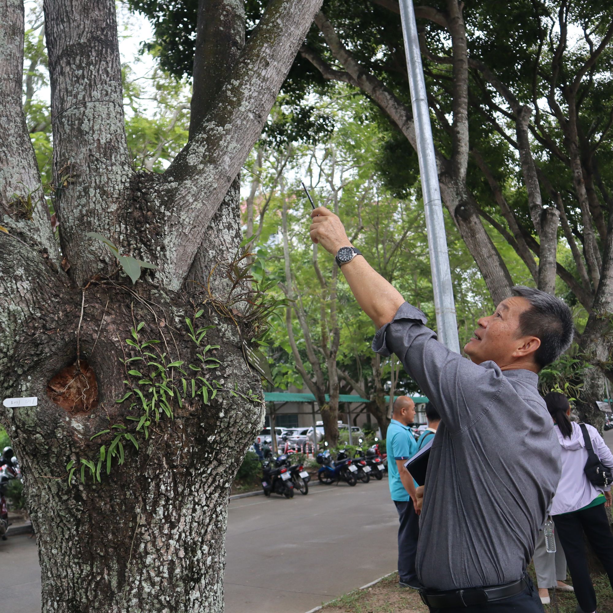 โอกาสนี้ได้รับเกียรติจาก ผู้ช่วยศาสตราจารย์บรรจง สมบูรณ์ชัย “หมอต้นไม้” ของเมืองไทย และทีม Babyteam and Babytree เป็นวิทยากร ทั้งภาคทฤษฎี และฝึกปฏิบัติ ซึ่งมีเจ้าหน้าที่จากทุกส่วนงานเข้าร่วมการฝึกอบรม เพื่อนำความรู้เป็นแนวทางในการดูแลรักษาต้นไม้ในแต่ละพื้นที่ ในแต่ละส่วนงานต่อไป