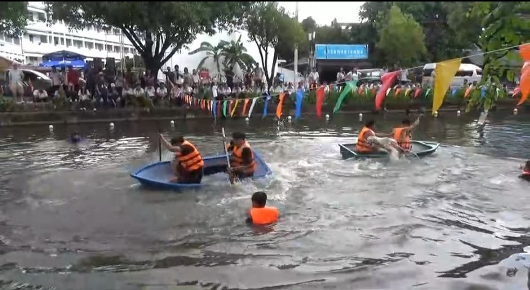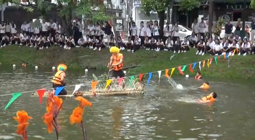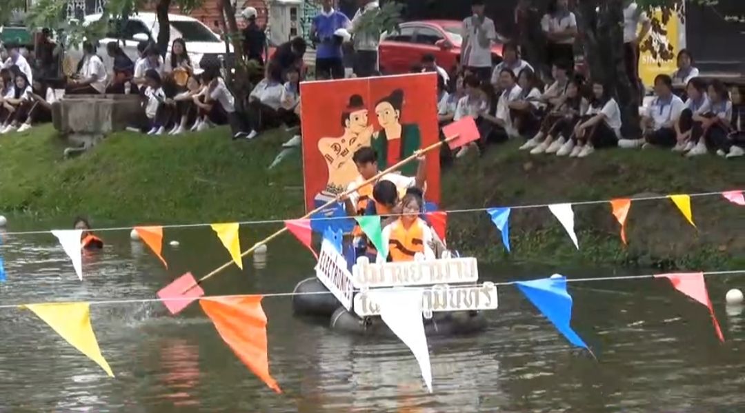 วิทยาลัยเทคโนโลยีเมโทรเชียงใหม่ และวิทยาลัยเทคโนโลยีพาณิชยการเชียงใหม่ แข่งขันเรือประดิษฐ์ จากวัสดุเหลือใช้ และแข่งขันพายเรือชักเย่อ ในคูเมืองเชียงใหม่ บรรยากาศสุดสนุกสนาน สร้างมิตรภาพและเสียงหัวเราะ