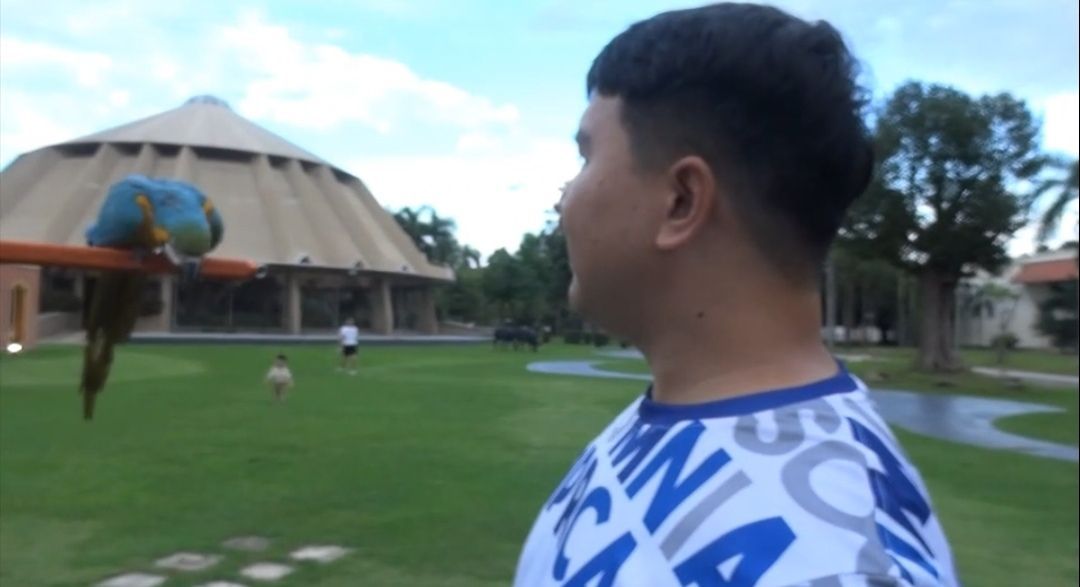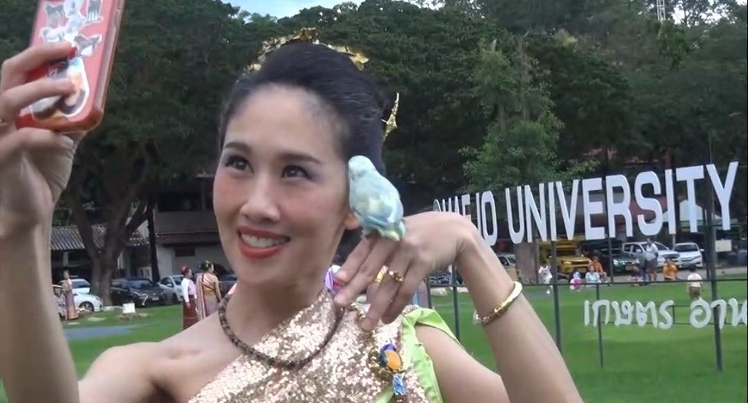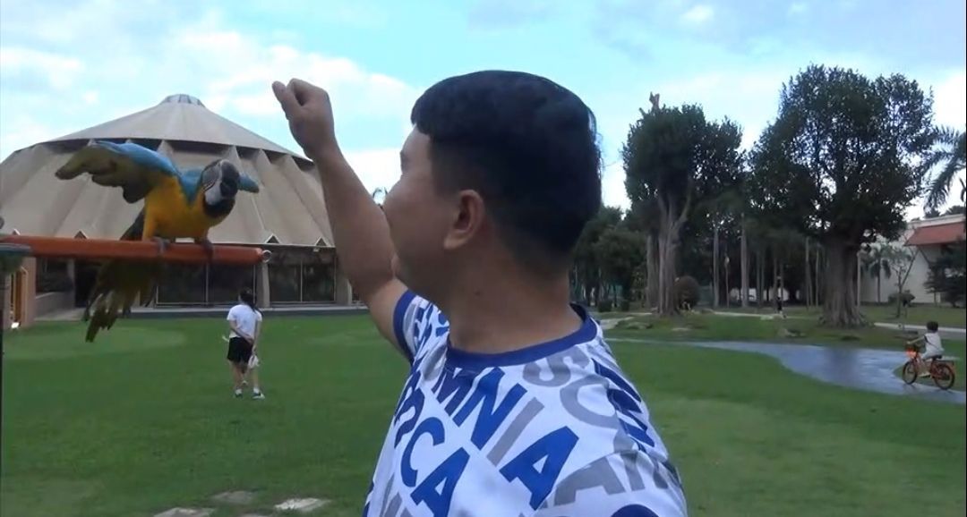 หนุ่มรักนก นำนกแก้วฟอพัส สุดรักอายุ 1 ปี น่าตาน่ารัก ตัวกลม ๆ ขนฟู ๆ มาหัดบินเล่น ในสนามหญ้า ภายมหาวิทยาลัยแม่โจ้ จังหวัดเชียงใหม่ ทำให้เด็ก ๆ และผู้ปกครองพากันมาถ่ายภาพ และยังมีนกแก้วมาคอร์ตัวใหญ่อายุ 3 ปี มาบินเล่นด้วย