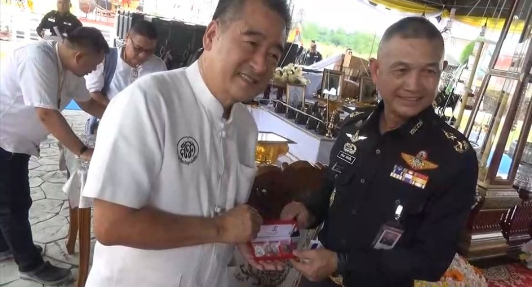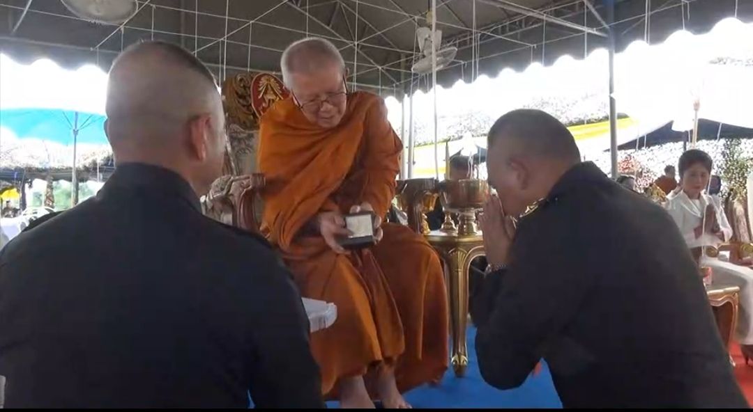 และที่ผู้ร่วมงานรอคอย พระครูบาเกียรติยศ พรหมปัญโญ หรือครูบาเกมส์ เจ้าอาวาส วัดบ้านแก่นไชย อำเภอสบปราบ จังหวัดลำปาง มาบริกรรมคาถา ปะพรมน้ำพุทธมนต์ และแจกเหรียญ ให้กับผู้ที่มาร่วมงานฟรี จนเข้าแถวต่อคิวกันยาวเหยียด รวมทั้งหมด 700 เหรียญ