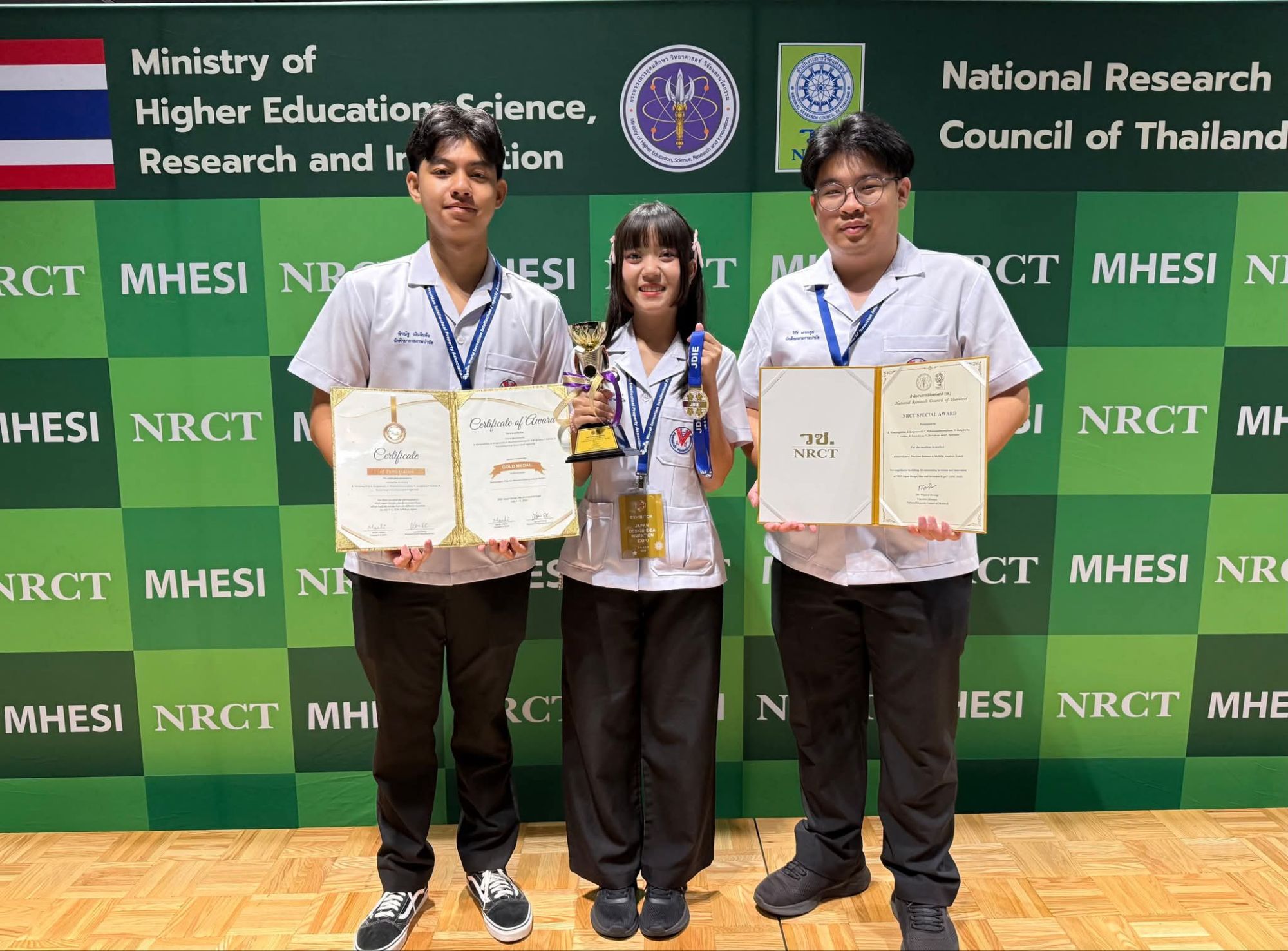 นางสาวนิชานันต์ เก่งเดชา นักศึกษาปริญญาโท สาขาวิชากายภาพบำบัด พร้อมด้วยนางสาวรัฐภรณ์ บุญเชียง นายวิรัช เดชะคุณ และนายพีรณัฐ เงินอินต๊ะ นักศึกษาชั้นปีที่ 4 สาขาวิชากายภาพบำบัด คณะเทคนิคการแพทย์ มช. คว้า 2 รางวัลใหญ่ ได้แก่ NRCT Special Award for the Excellent Invention และ Gold Medal Award จากผลงานนวัตกรรม “BalanceSync+: Precision Balance & Mobility Analysis System” ในงาน Japan Design Idea & Invention Expo 2025 (JDIE) โดยมี ผศ.ดร.ศิริพันธุ์ คงสวัสดิ์ และ ผศ.ดร.กิตติชัย วรรธนะจิตติกุล เป็นอาจารย์ที่ปรึกษา ในงาน Japan Design Idea & Invention Expo 2025 (JDIE) ณ Bellesalle Haneda Airport ประเทศญี่ปุ่น ซึ่งจัดขึ้นระหว่างวันที่ 5-6 กรกฎาคม 2568