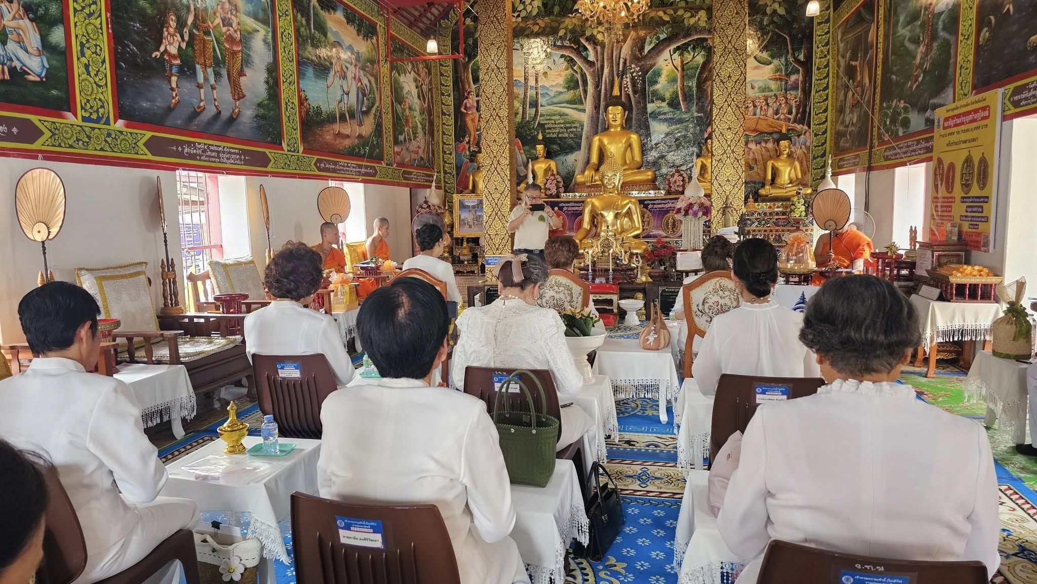 สมาคมแม่ดีเด่นแห่งชาติฯถวายเทียนพรรษา ผ้าอาบน้ำฝน พร้อมบริวาร