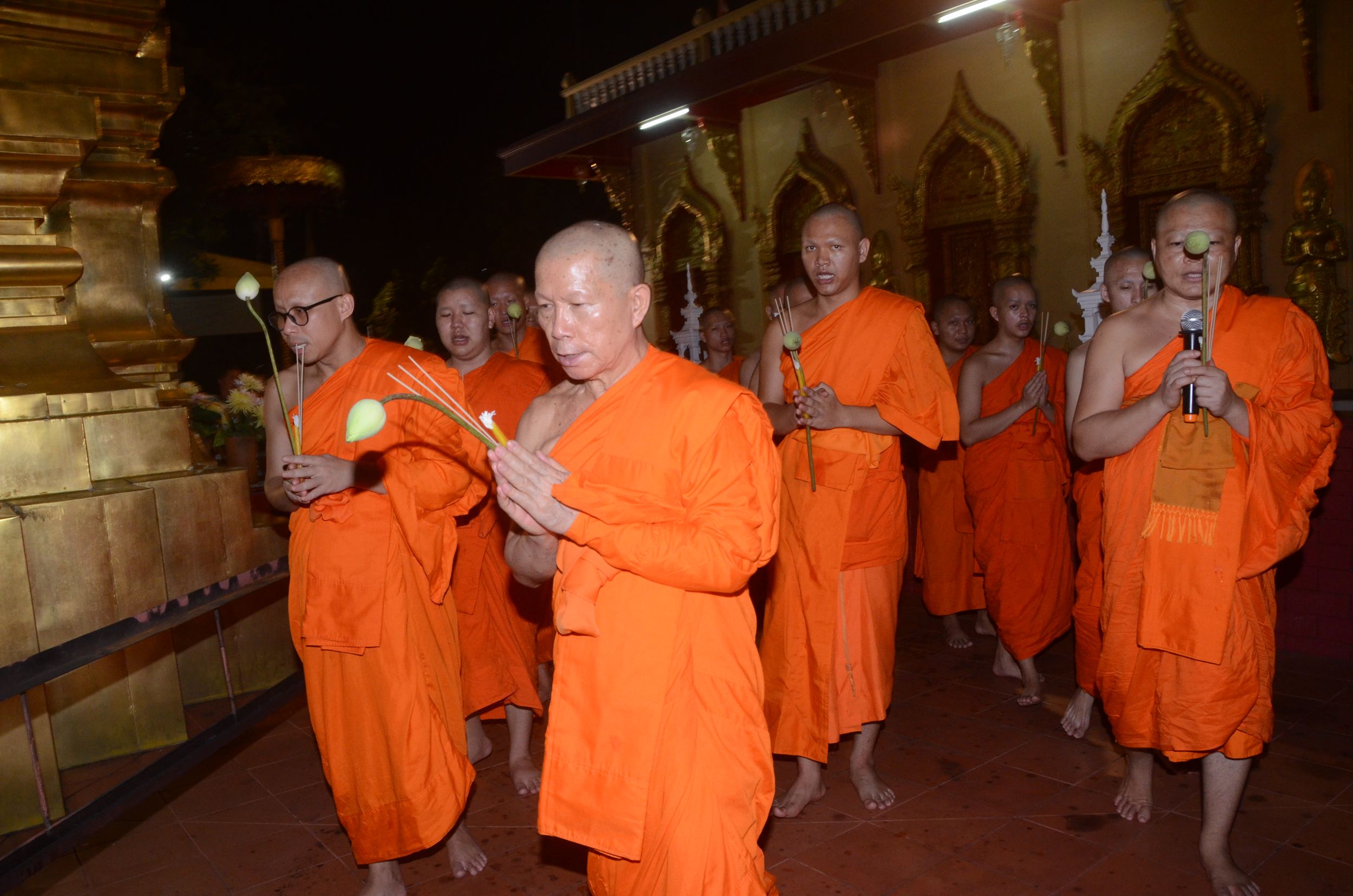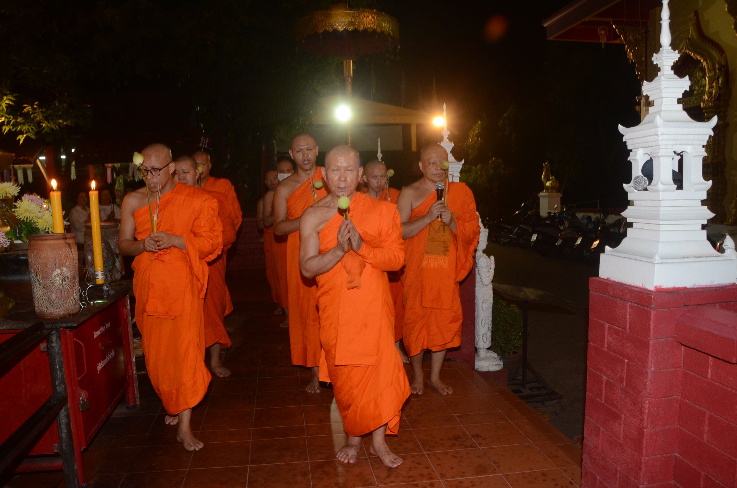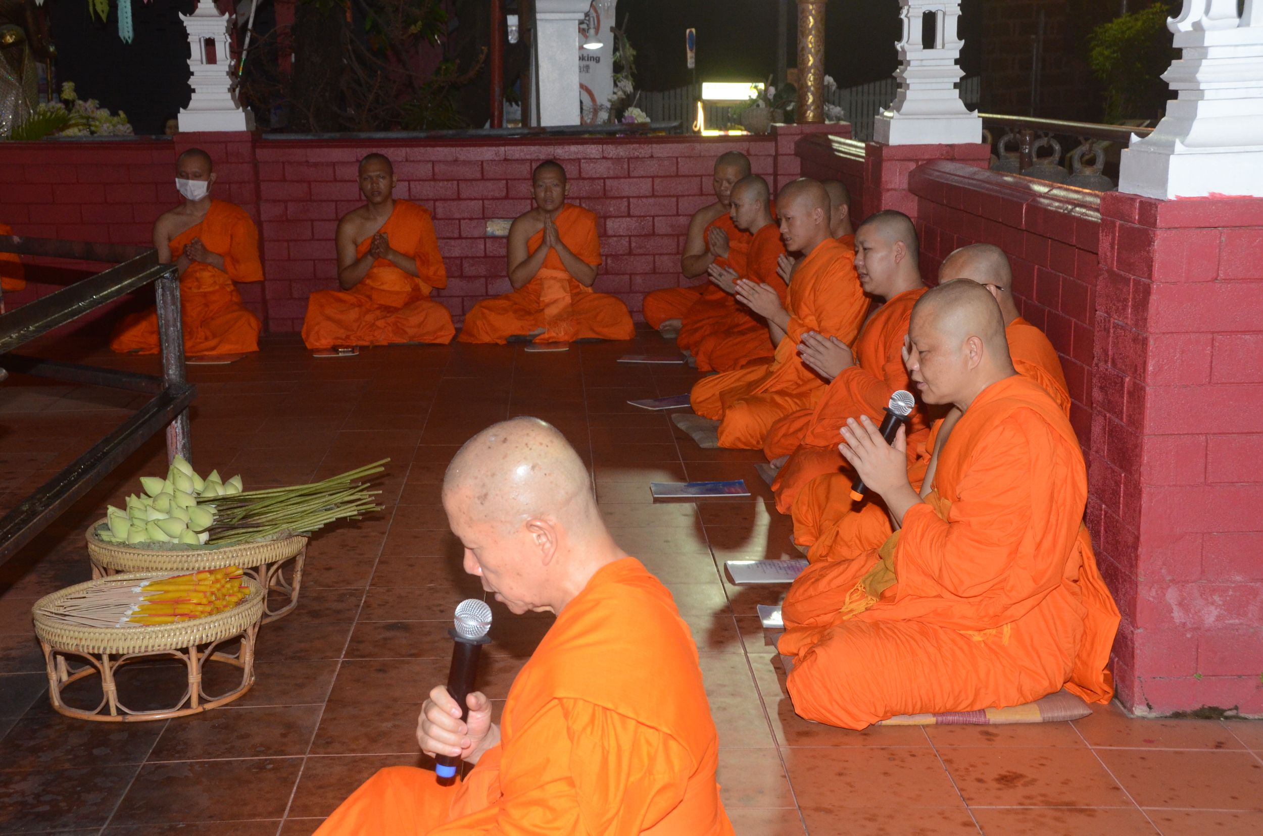 วัดพันอ้น นำพระภิกษุ สามเณร พุทธศาสนิกชน สวดมนต์บท “ธัมมจักกัปปวัตนสูตร”