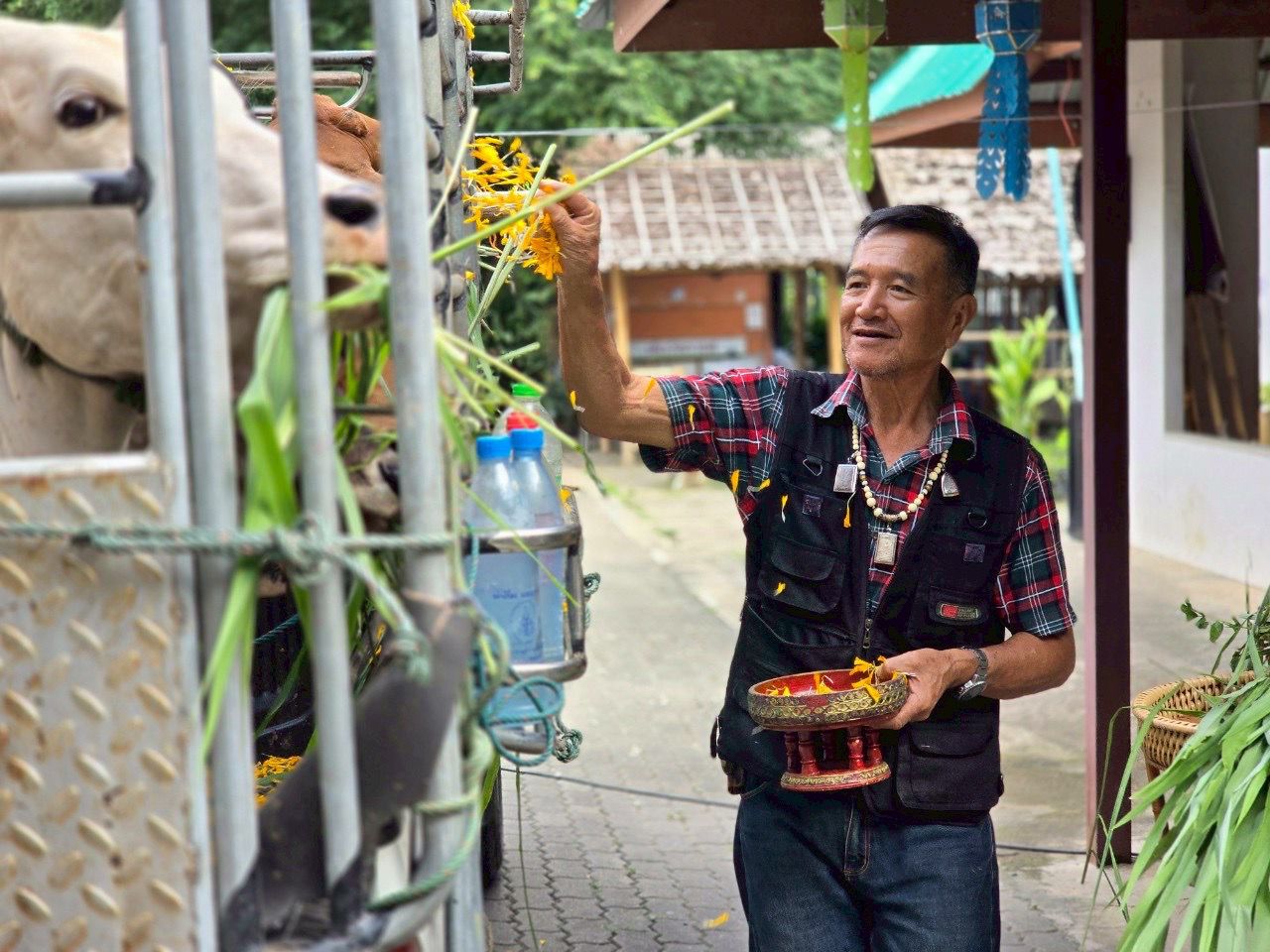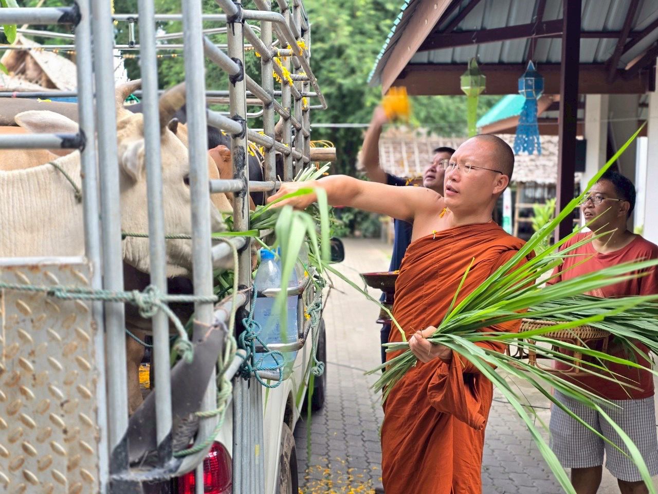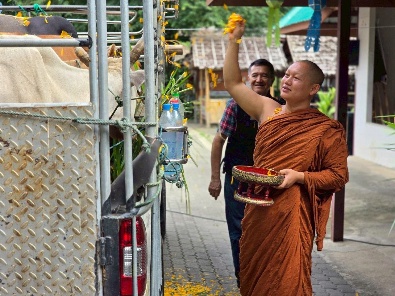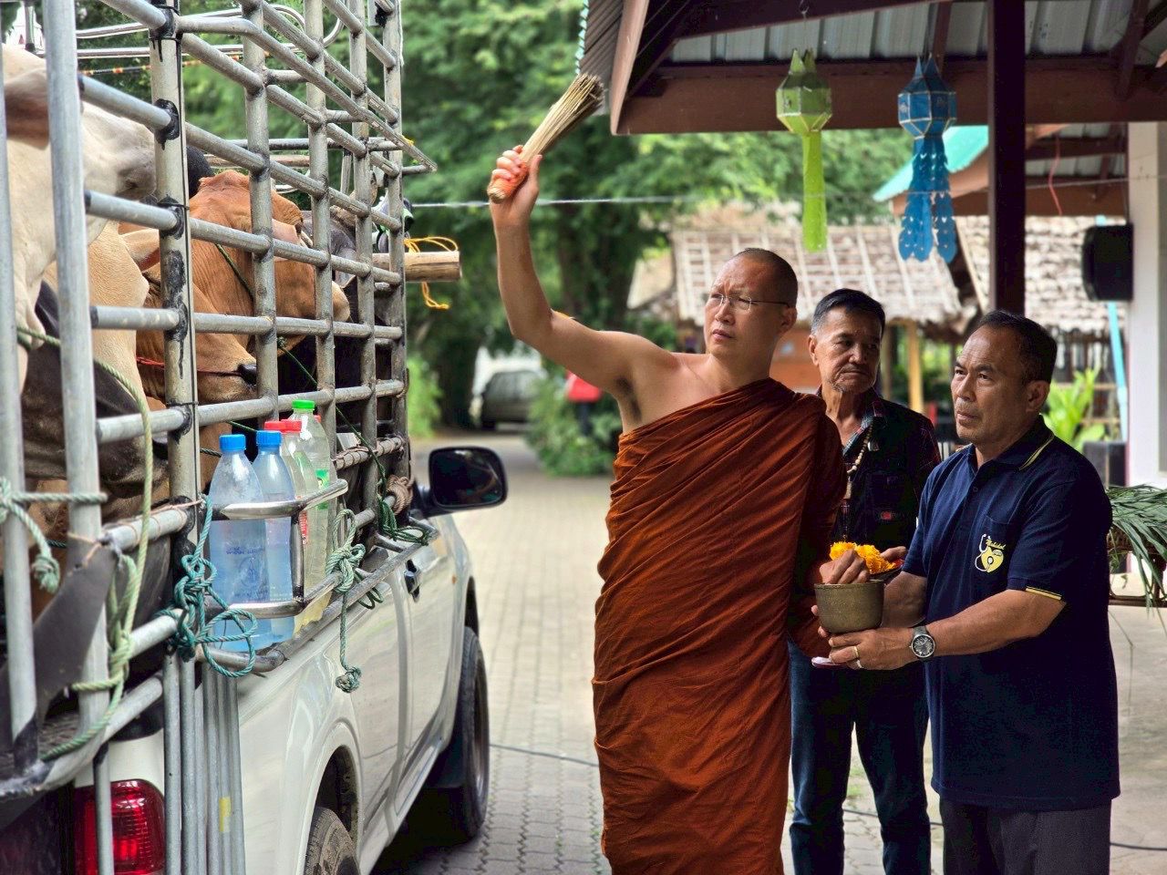 พระครูอ๊อด วัดเจดีย์หลวง ไถ่ชีวิตวัวพ่อพันธุ์แม่พันธุ์ 6 ตัว ก่อนถูกส่งเข้าโรงเชือด – มอบต่อให้มูลนิธิส่งเสริมอาชีพครอบครัวตำรวจและครูดูแลต่อ