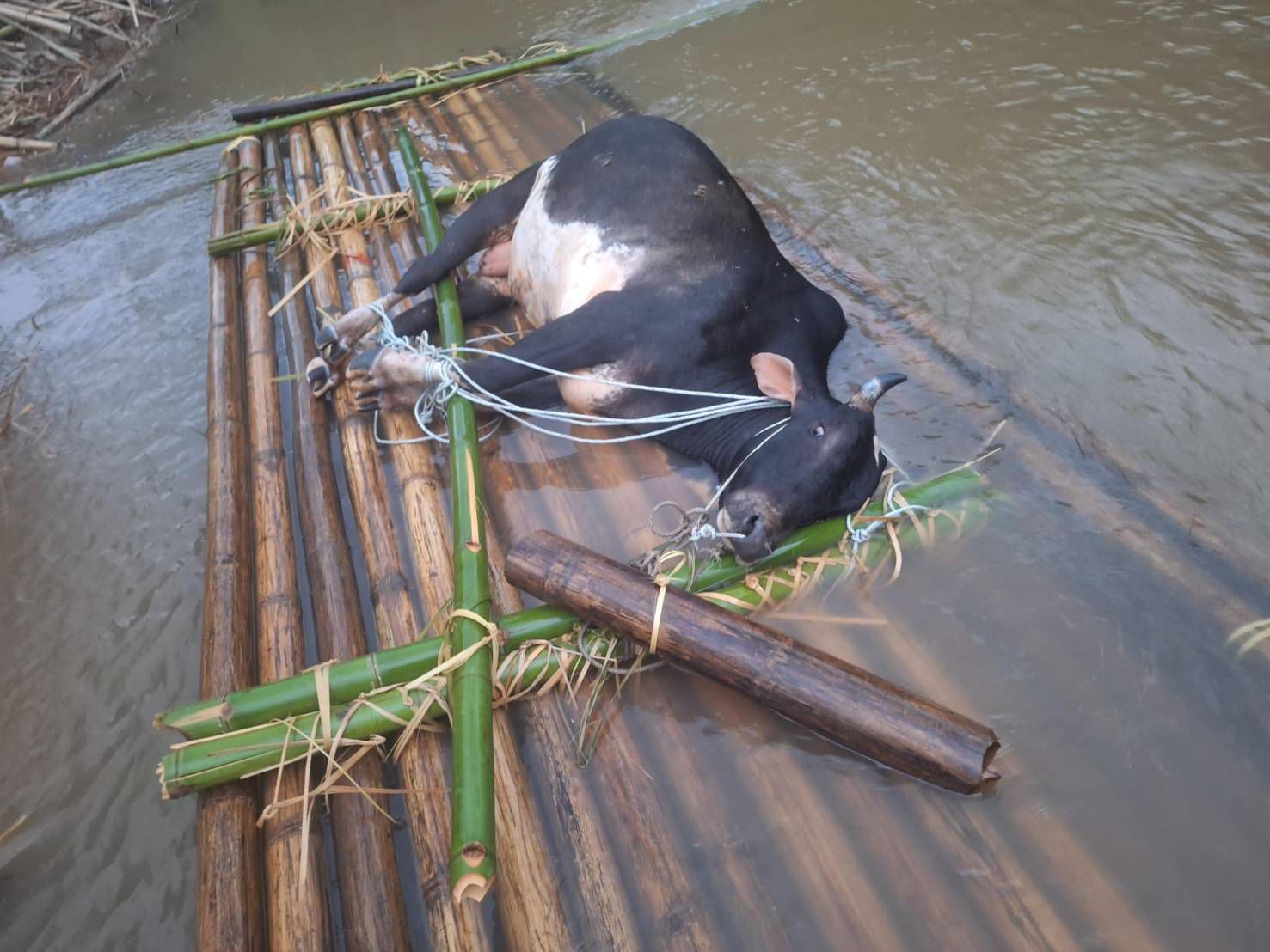 ภายหลังรับแจ้ง พระครูอ๊อดได้เร่งประสานลูกศิษย์และเจ้าหน้าที่ในพื้นที่เข้าตรวจสอบ พบชายคนหนึ่งกำลังล่องแพ โดยมีวัวทั้งหมด 6 ตัวอยู่บนแพในสภาพเปียกปอนจากการเดินทาง ถูกมัดแน่นและส่งเสียงร้องด้วยความตกใจ วัวทั้งหมดประกอบด้วยวัวตัวผู้ 1 ตัว และวัวตัวเมีย 5 ตัว ซึ่งล้วนเป็นวัวขนาดพ่อพันธุ์แม่พันธุ์ที่มีมูลค่า