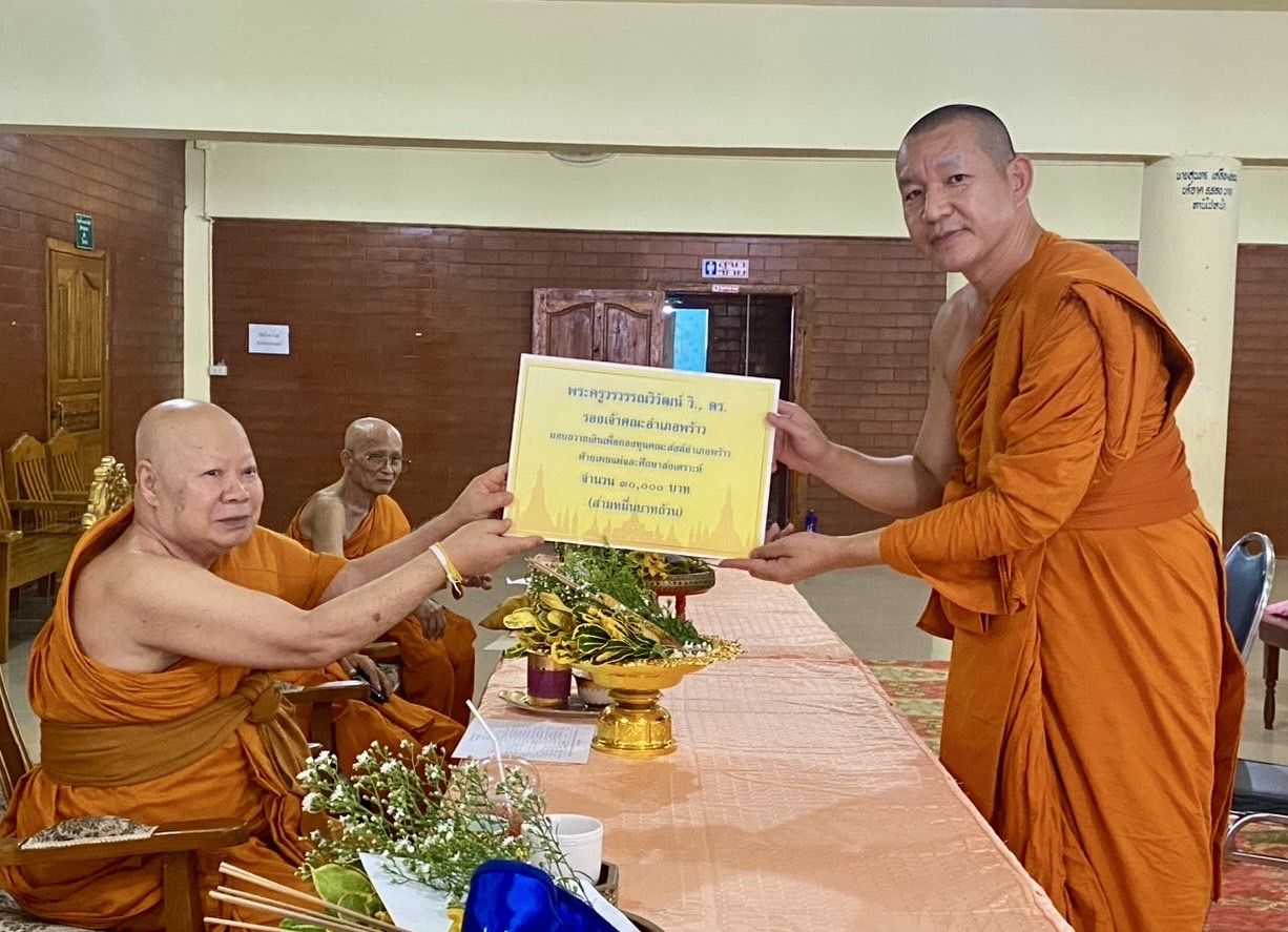 วันเสาร์ที่ 12 กรกฎาคม 2568 ณ วัดพระธาตุดอยเวียง ตำบลโหล่งขอด อำเภอพร้าว จังหวัดเชียงใหม่ พระครูวรวรรณวิวัฒน์ วิ.,ดร.รองเจ้าคณะอำเภอพร้าว ปฏิบัติศาสนกิจ ร่วมพิธีสามีจิกรรมคารวะพระมหาเถระในอำเภอพร้าวในช่วงเข้าพรรษาและประชุมคณะสงฆ์อำเภอพร้าวพร้อมด้วยชมรมน้อยหนานและประธานสภาวัฒนธรรมอำเภอพร้าวเข้าร่วมประชุม จากนั้นได้มอบปัจจัยเข้าสมทบกองทุนเผยแผ่และศึกษาสงเคราะห์คณะสงฆ์อำเภอพร้าว จำนวน 30,000 บาท และอุปกรณ์ให้สำนักงานหน่วยอบรมประชาชนประจำตำบล (อ.ป.ต.) ในเขตอำเภอพร้าว จำนวน 11 ตำบลและศูนย์ศึกษาพระพุทธศาสนาวันอาทิตย์ในอำเภอพร้าว จำนวน 9 แห่ง รวมทั้งหมด 20 แห่ง เป็นจำนวนเงิน 15,000 บาท